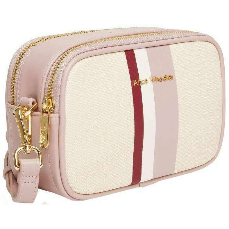 Borsa per traversa con coppia con fotocamera a strisce Madrid Alice Wheeler - Pink