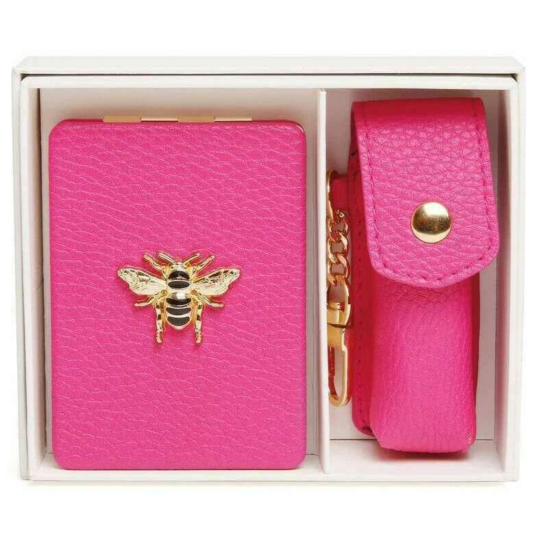 ; Porta di rossetto - 8,5 cm (altezza) x 3 cm (larghezza) x 3 cm (profondità). Tutti i compatti sono completi con imballaggi Alice Wheeler. Il set di regali di Alice Wheeler London Oblong Compact e Hold Holder - il rosa caldo farà un regalo straordinario per te o qualcuno che ami. L'imbellimento dell'ape meravigliosamente iconico è presente sullo specchio ed entrambi hanno colori e hardware abbinati, rendendoli una coppia di abbinamento elegante. Lo specchio è ottimo per i ritocchi di tutti i giorni e il supporto per rossetto è perfetto per proteggere il tuo rossetto quotidiano preferito con stile. Questi saranno un'aggiunta perfetta alla tua borsa di tutti i giorni, aggiungendo comodità. "! =" "]})
