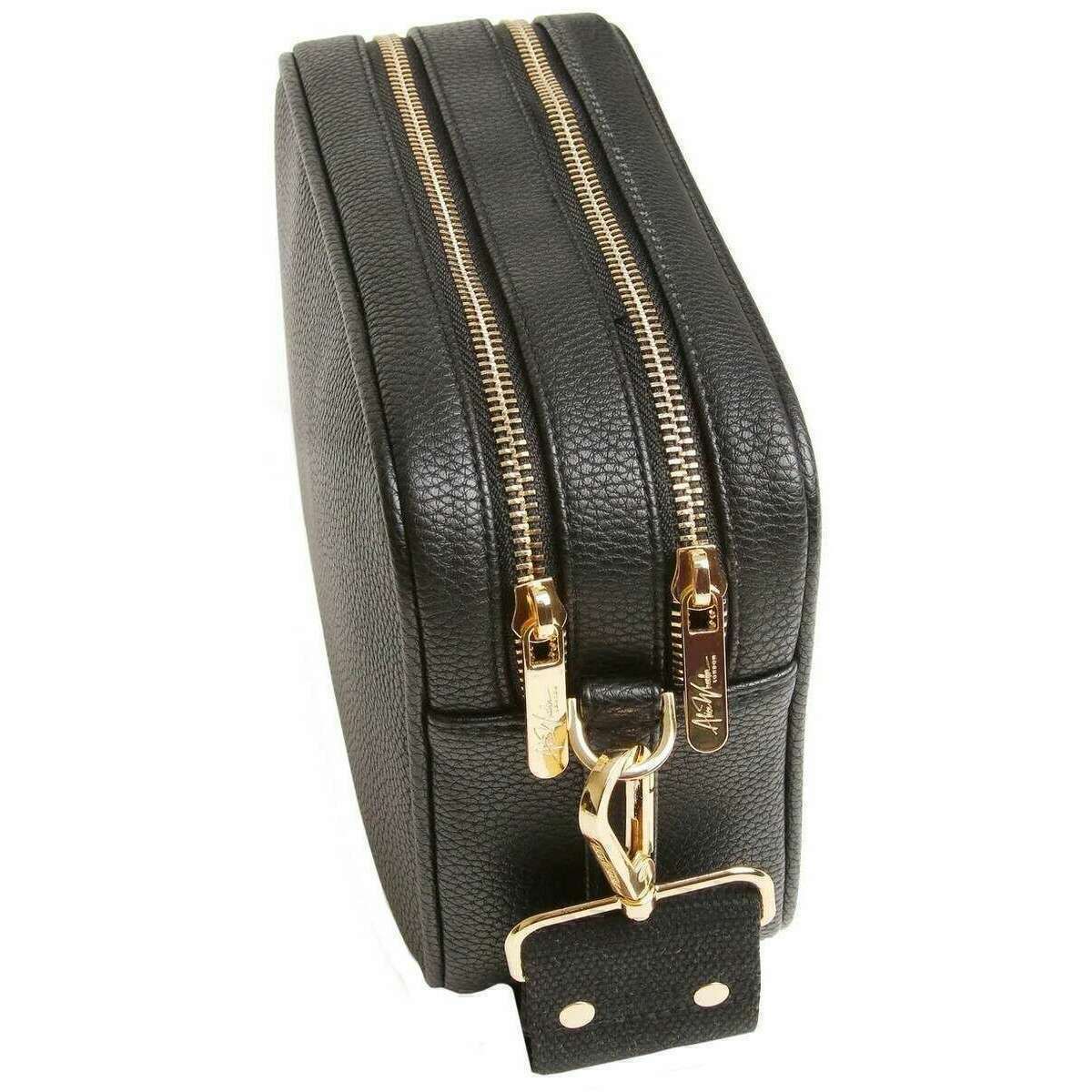 • Due scomparti con cerniera principale, tasca zippata interna, due cinghie regolabili staccabili, hardware in metallo oro