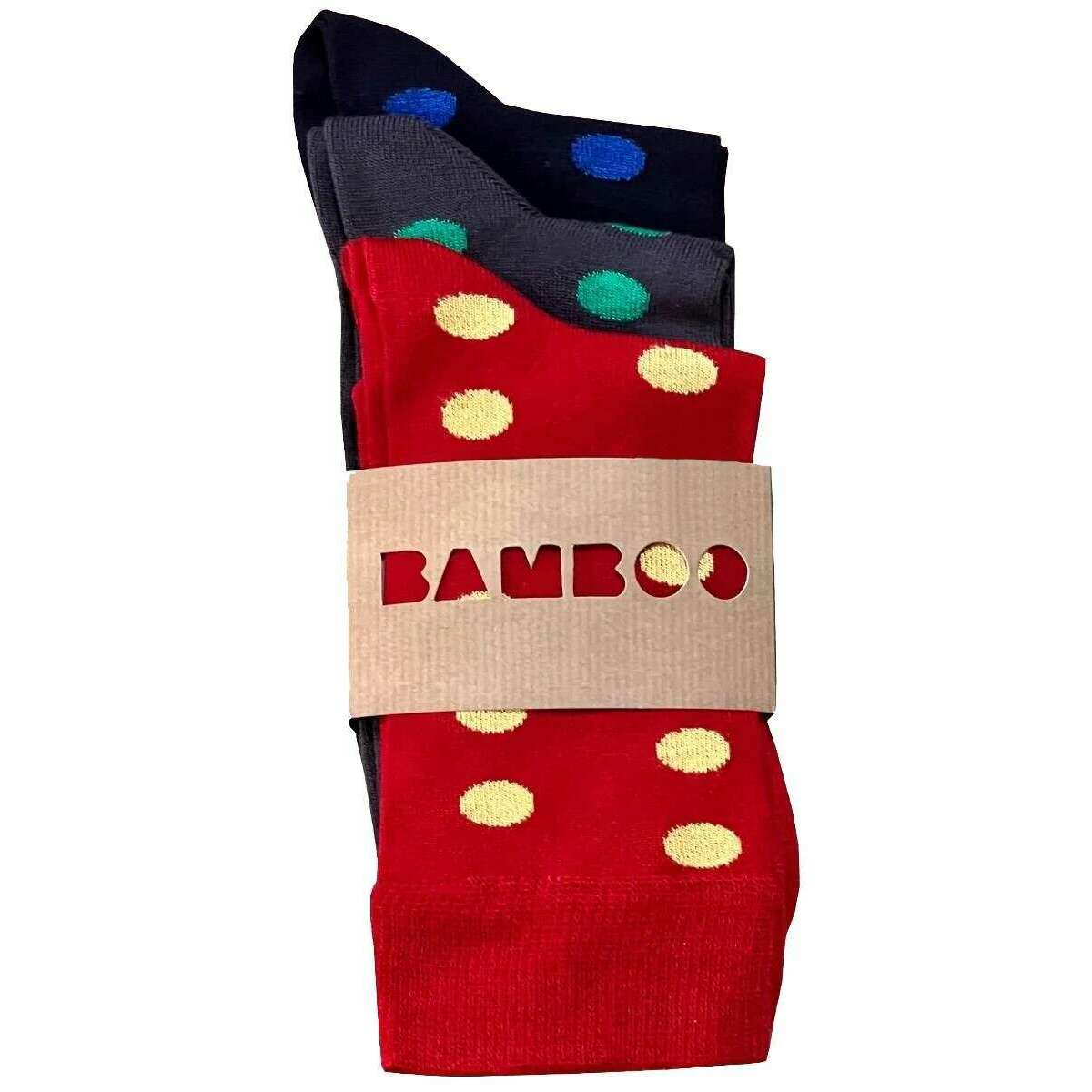 Bassin and Brown Confezione da tre calzini maculati in bambù - Rosso/Blu scuro/Grigio