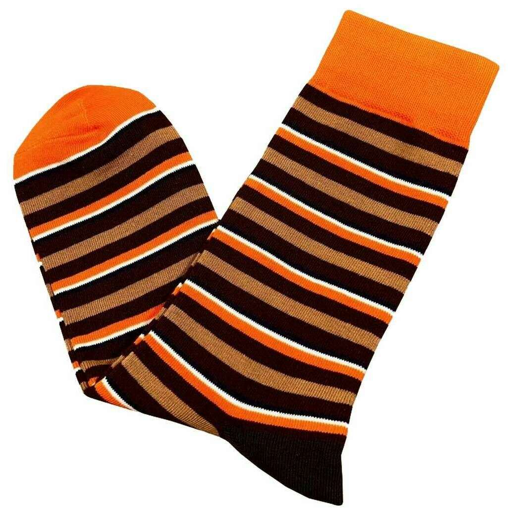 Bassin and Brown Calzini Woodrowe Multi Stripe - Arancione/Marrone/Fawn