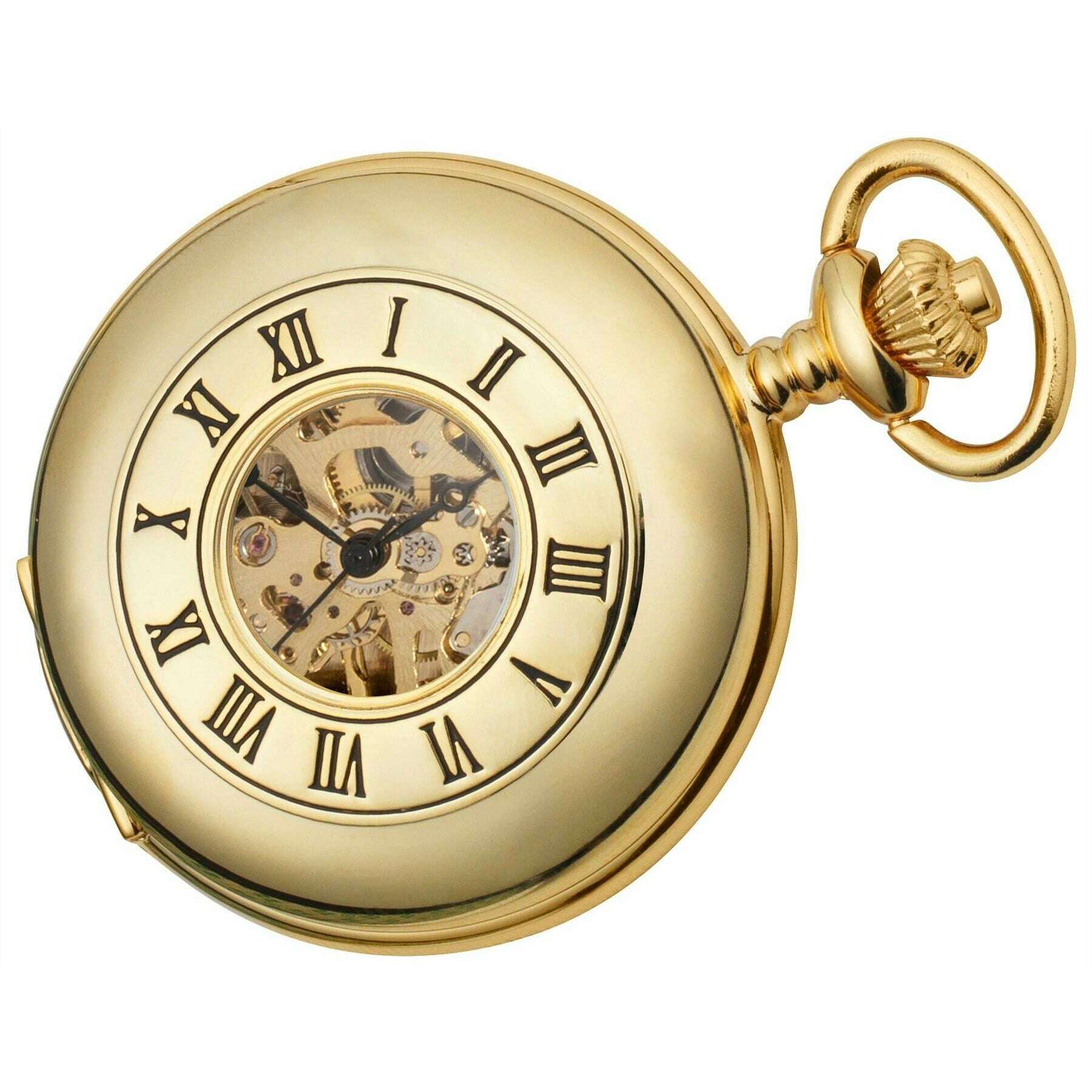 Utilizzando metallo placcato oro, questo orologio da tasca meccanico mezzo cacciatore di Burleigh è perfetto per gli uomini e un must. Misura 4,7 cm (diametro) x 1,5 cm (profondità). Tutti gli orologi sono completi di confezione Woodford. L'orologio da tasca meccanico Burleigh Half Hunter - Oro presenta un design a metà cacciatore e funziona con un movimento meccanico, garantendo un controllo efficiente del tempo. Quando è chiuso, puoi vedere il quadrante con numeri romani in grassetto con le lancette visibili da sotto, permettendoti di dare una rapida occhiata all'ora senza doverlo aprire.