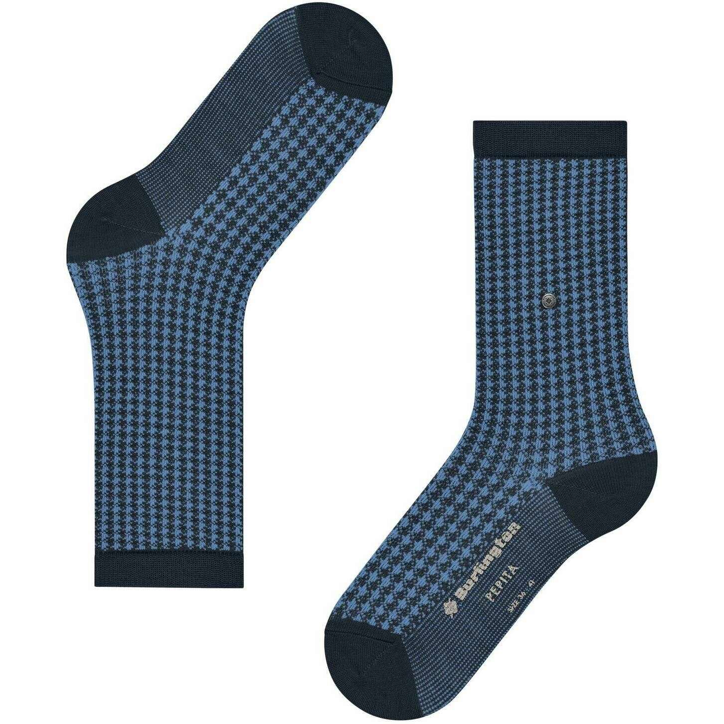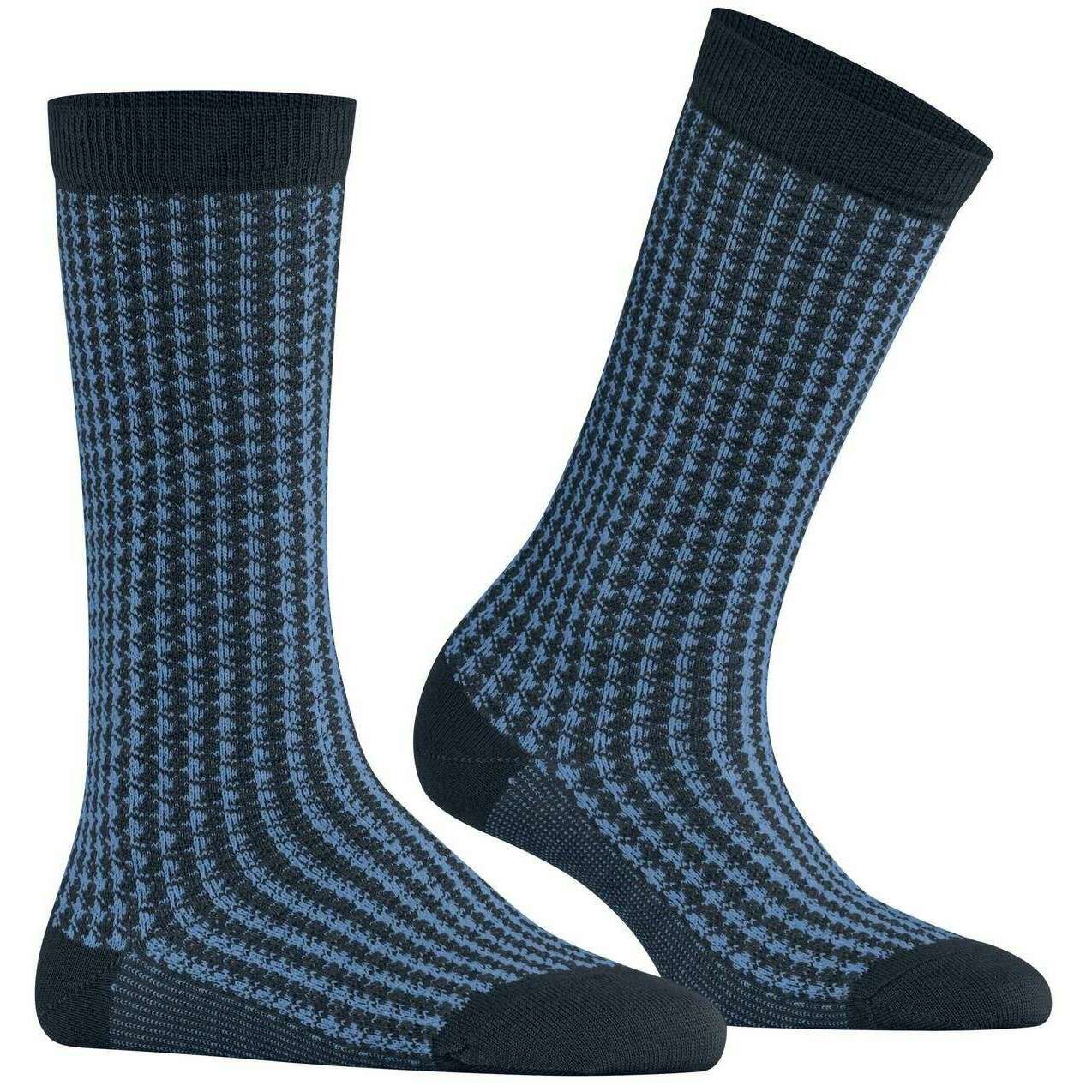 Perfetti per le donne sono questi calzini Pepita blu marino di Burlington, anch'essi sono realizzati in 73% lana vergine, 25% poliammide (8% riciclata) e 2% elastan. Anche i calzini blu marino sono disegnati con motivo pied de poule. Si consiglia di lavare a 30 gradi per mantenere questi calzini in buone condizioni. Tutti i calzini sono completi di etichette per calzini Burlington. I calzini Burlington Pepita - Blu marino sono un'aggiunta elegante e unica a qualsiasi guardaroba, progettati per aggiungere un tocco di stile garantendo comfort e durata. Questi calzini combinano il delicato design pied de poule con l'iconica clip Burlington sul lato per valorizzare qualsiasi outfit. Il caldo misto lana mantiene questi calzini traspiranti, mentre il tessuto elasticizzato assicura che si adattino comodamente senza scivolare.