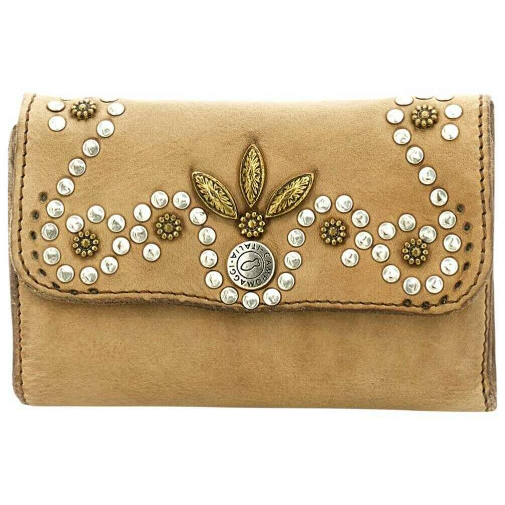 Questa borsa da donna con patta Mirta Siena di Campomaggi è disponibile in un colore beige ghiaccio ed è realizzata al 100% in pelle di vacchetta conciata al vegetale. Misura 14 cm (altezza) x 10 cm (larghezza) x 1,5 cm (profondità). Campomaggi ha realizzato questa borsa con patta Mirta Siena in Italia. Tutte le borse sono complete di confezione campomaggi. La borsa con patta Campomaggi Mirta Siena - Ice Beige è un accessorio raffinato che mette in mostra l'artigianalità italiana distintiva del marchio. Realizzato in pregiata pelle di vacchetta conciata al vegetale, sviluppa nel tempo una ricca patina, che riflette la naturale bellezza e la durabilità del materiale. La parte anteriore è ornata da un elegante design con borchie, che aggiunge un sottile tocco decorativo che ne esalta la silhouette classica. Protetto da una chiusura con bottone a pressione, il portafoglio si apre per rivelare un interno ben organizzato con tre scomparti e dieci porta carte ideali per tenere in ordine carte, contanti, ricevute ed elementi essenziali. Nonostante il layout strutturato, il design rimane sottile e facile da trasportare, rendendolo perfetto per l'uso quotidiano. Realizzata a mano in Italia, la borsa con patta Campomaggi Mirta Siena unisce funzionalità, dettagli artigianali e stile senza tempo, rendendola un'aggiunta sofisticata a qualsiasi collezione di accessori.