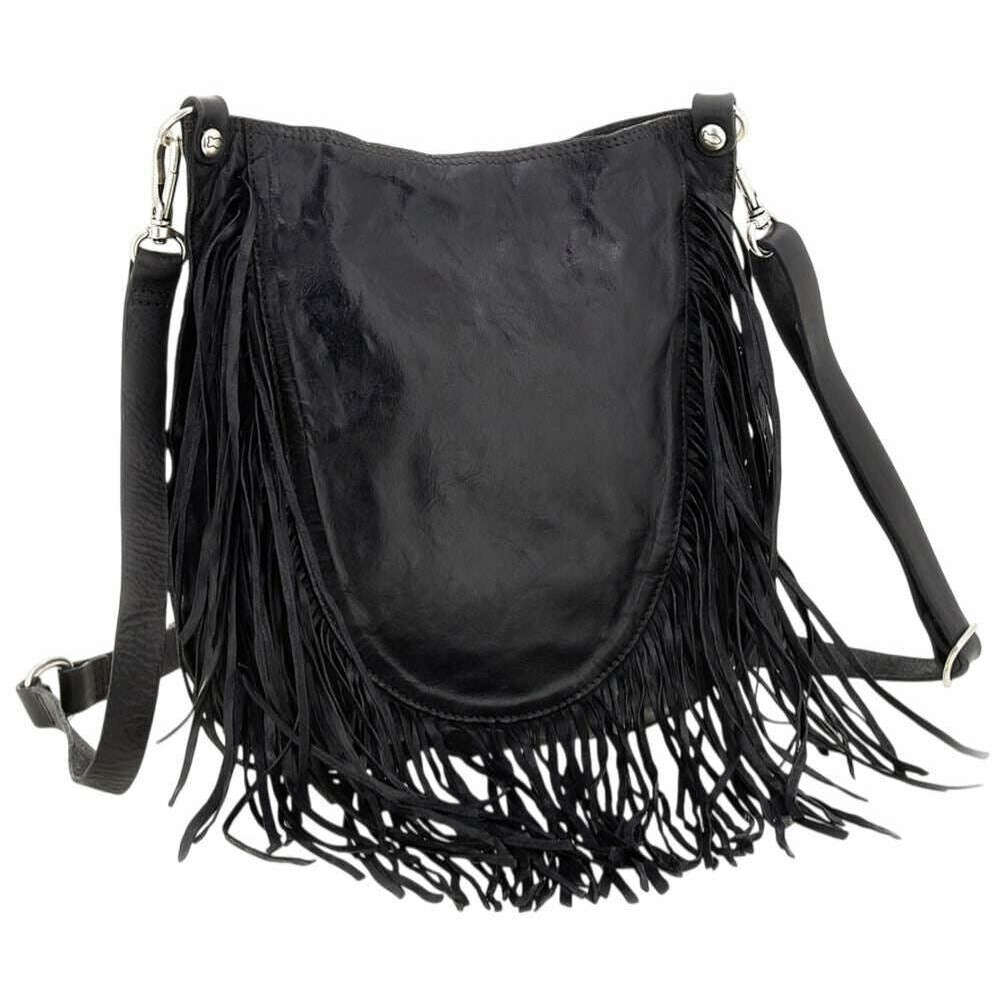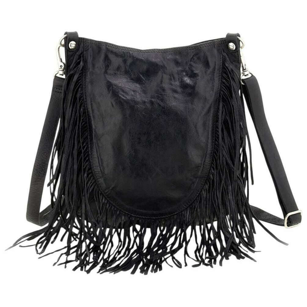 Questa borsa a tracolla zefiro da donna ben realizzata di Campomaggi è disponibile in colore nero ed è realizzata al 100% in pelle di vacchetta conciata al vegetale. Misura 29 cm (altezza) x 28 cm (larghezza) x 0,5 cm (profondità). Campomaggi ha realizzato questa borsa a tracolla zefiro in Italia. Tutte le borse sono complete di confezione campomaggi. La borsa a tracolla Zefiro Campomaggi - Nera cattura il fascino libero dell'iconico stile gipsy estivo di Campomaggi. Parte della distintiva linea Zefiro, è realizzato in pelle di prima qualità e rifinito con dettagli distintivi di frange che aggiungono movimento, carattere e un tocco artigianale al design. La borsa si chiude saldamente con un bottone a pressione e offre una pratica organizzazione all'interno, caratterizzata da uno scomparto interno, una tasca interna chiusa e un porta cellulare dedicato. Questi dettagli attenti facilitano la conservazione degli elementi essenziali in modo ordinato pur mantenendo una silhouette compatta ed elegante. Realizzata a mano in Italia, la borsa a tracolla Zefiro Campomaggi riflette la dedizione del marchio all'artigianato e al design espressivo. È un accessorio straordinario per coloro che apprezzano un mix di stile bohémien e funzionalità quotidiana.