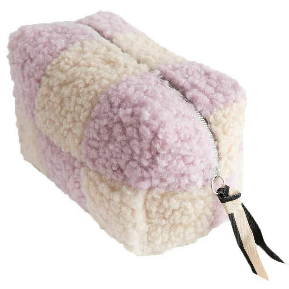 Borsa per cosmetici Caroline Gardner Check Borg Cube - Lilla/crema