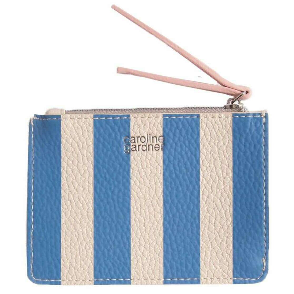 Portamonete corto a righe Caroline Gardner - blu/crema/rosa