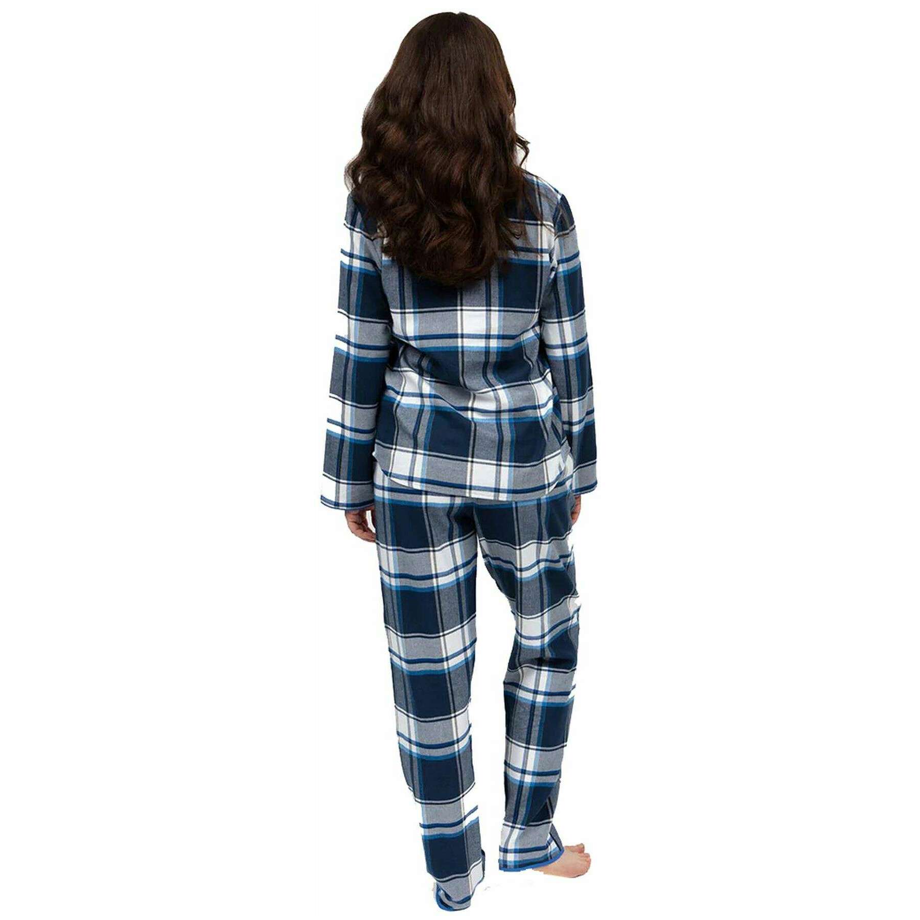 Questo pigiama da donna a quadri spazzolati color ghiaccio del marchio Cyberjammies è realizzato al 100% in cotone e è presentato in blu scuro. Anche i pigiami blu scuro/bianchi sono disegnati con motivo a quadri. Si consiglia di lavare in lavatrice al rovescio, non immergere, lavare con colori simili per mantenere questi pigiami in buone condizioni. Tutti i pigiami sono completi di etichette cyberjammies. Il set pigiama a quadri spazzolati Frosty Cyberjammies - Blu scuro/Bianco è il tipo di paio che vorrai indossare sempre, giorno e notte, mentre sei nel comfort della tua casa accogliente. Il bellissimo design a quadri offre un carattere classico mentre lo splendido materiale in cotone darà una sensazione lussuosa sulla tua pelle. La camicia con bottoni ti offre uno stile senza tempo, mentre i pantaloni sono dotati di coulisse per consentire una vestibilità comoda.