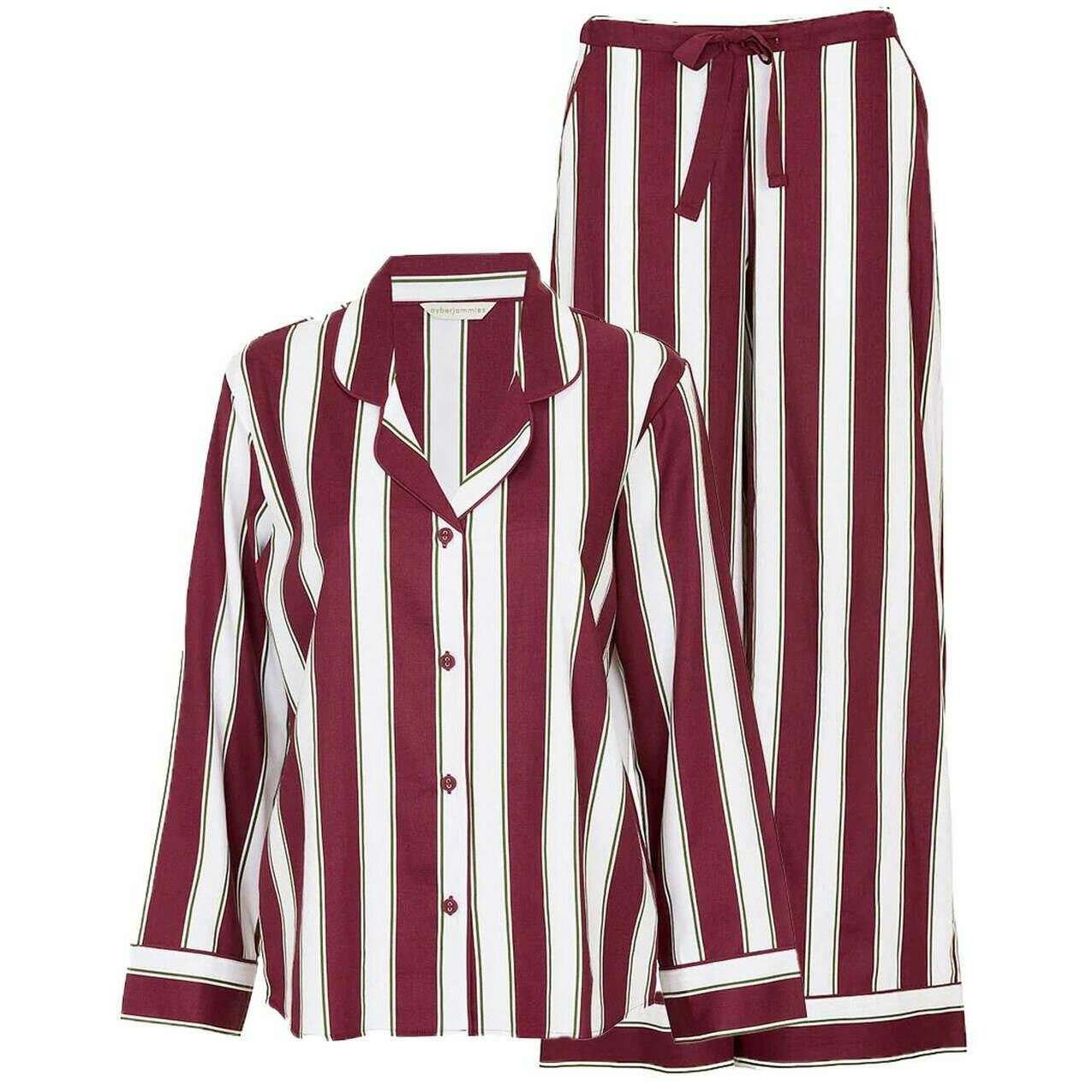 Cyberjammies Yasmin Set pigiama a righe stampate - Sangue di bue Borgogna/Bianco