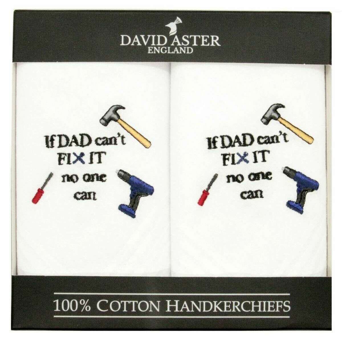 Questi fazzoletti ricamati fai da te da uomo ben fatti di David Aster sono disponibili in colore bianco ed sono realizzati al 100% in cotone. La confezione da 2 fazzoletti ha un buon rapporto qualità-prezzo e garantisce che siano un buon acquisto. Tutti i fazzoletti sono forniti completi di una scatola di presentazione David Aster. I fazzoletti ricamati fai da te David Aster - Bianco è uno splendido pacchetto da possedere con una frase fai da te del papà su ciascuno di essi con uno sfondo bianco. Sicuramente impressionerà, questo darà al tuo abbigliamento il perfetto look trendy e rifinito grazie al suo design personalizzato che ti farà distinguere dalla massa. Rendilo un fantastico regalo per ogni papà che ama il fai-da-te.