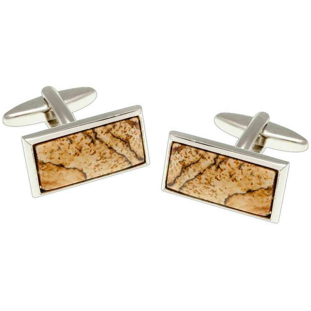 Questi gemelli rettangolari in diaspro da uomo di ottima fattura di David Van Hagen sono disponibili in un colore beige/argento e sono realizzati in metallo comune. Tutti i gemelli sono forniti completi di confezione David Van Hagen. I gemelli rettangolari David Van Hagen Jasper - Beige/Argento presentano un design casual ma elegante in argento e diaspro, racchiusi in una forma rettangolare che li rende l'accessorio perfetto per qualsiasi outfit formale. Questi gemelli sono sofisticati e accattivanti.