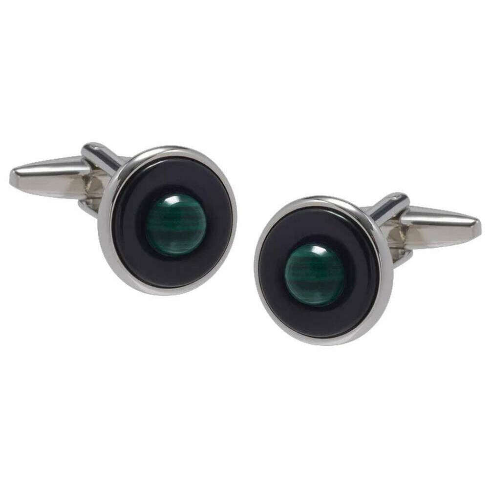 • Ispirato dagli anelli di Saturno, centro cabochon in malachite verde, pietra centrale di onice, pietre semipreziose naturali, gemello basculante standard