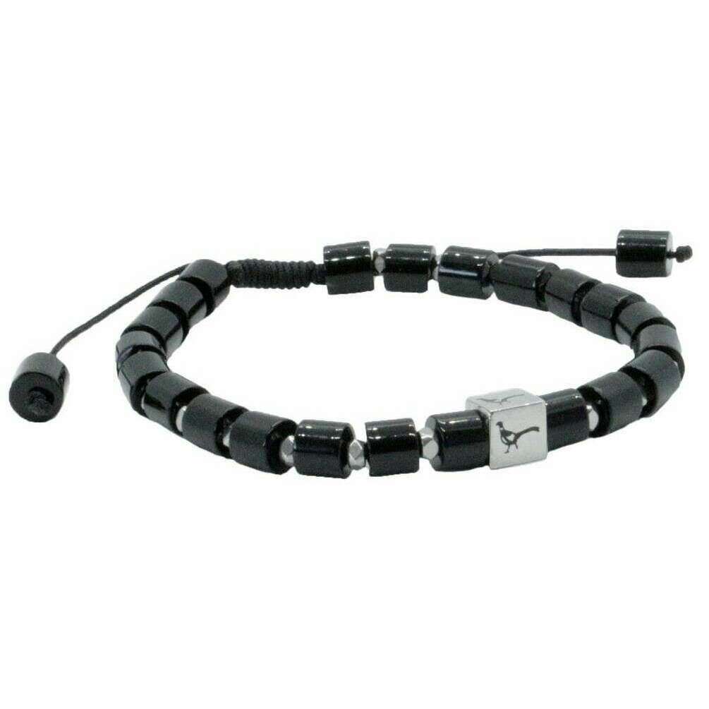 Bracciale David Van Hagen con perline di fagiano e agata - nero