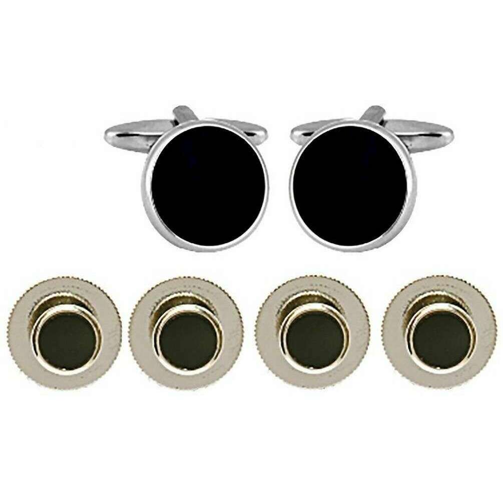 Set di gemelli rotondi e borchie per abito David Van Hagen - Nero/Argento