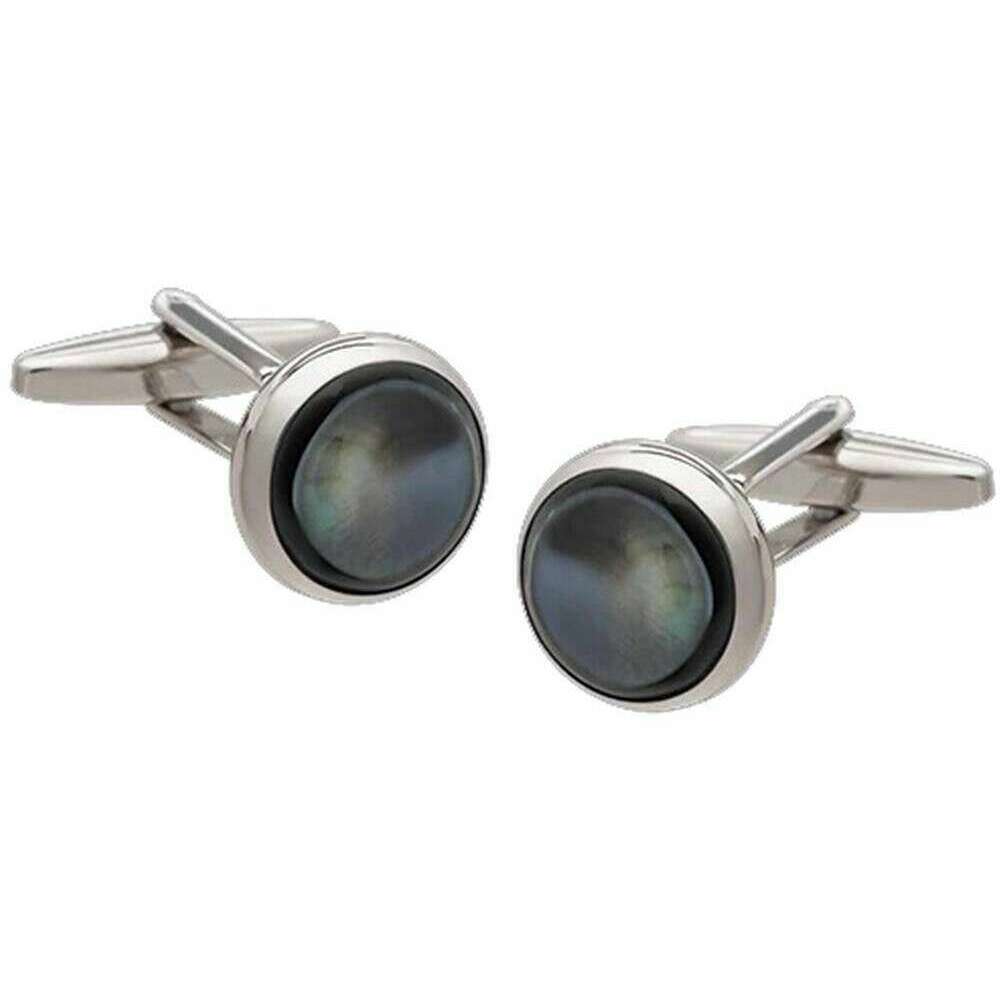 • Gemelli standard basculanti, diametro 14 mm, madreperla concava, pietra fumé, pietre semipreziose naturali, involucro in argento