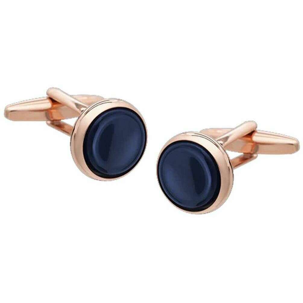 • Gemello standard basculante, diametro 14 mm, pietra sodalite a immersione concava, pietre semipreziose naturali, involucro in oro rosa