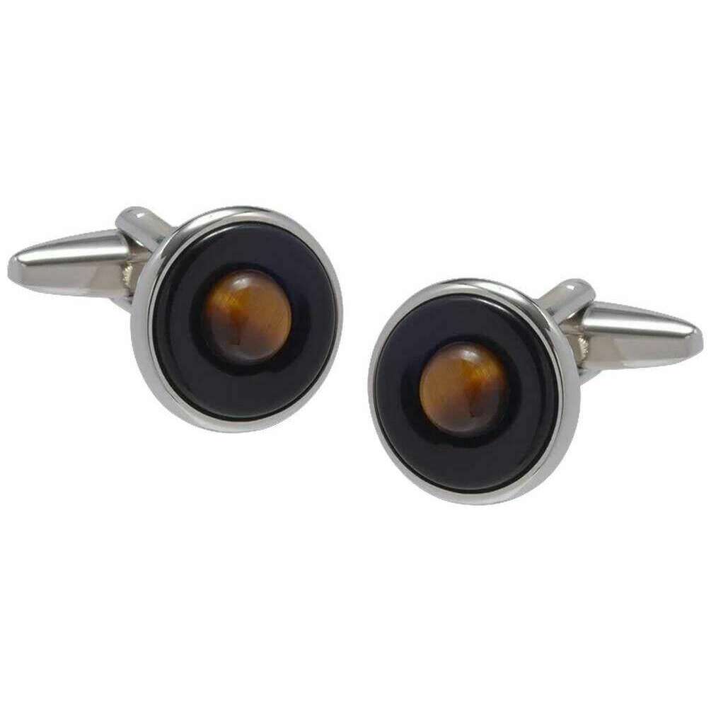 • Ispirato agli anelli di Saturno, al centro del cabochon dell'occhio di tigre, alla pietra centrale di onice, alle pietre semipreziose naturali, al basculante per gemelli standard