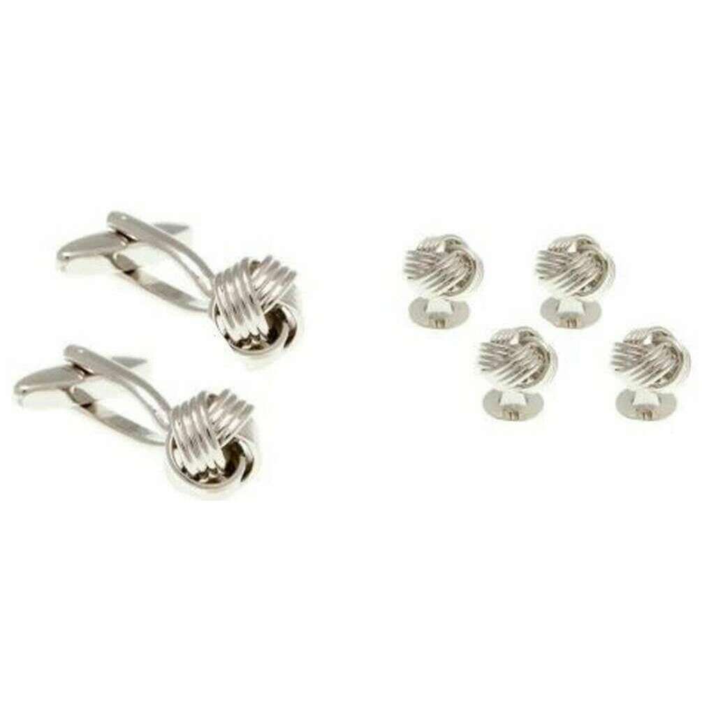 Set di borchie e gemelli per abito con nodo intrecciato di David Van Hagen - Argento