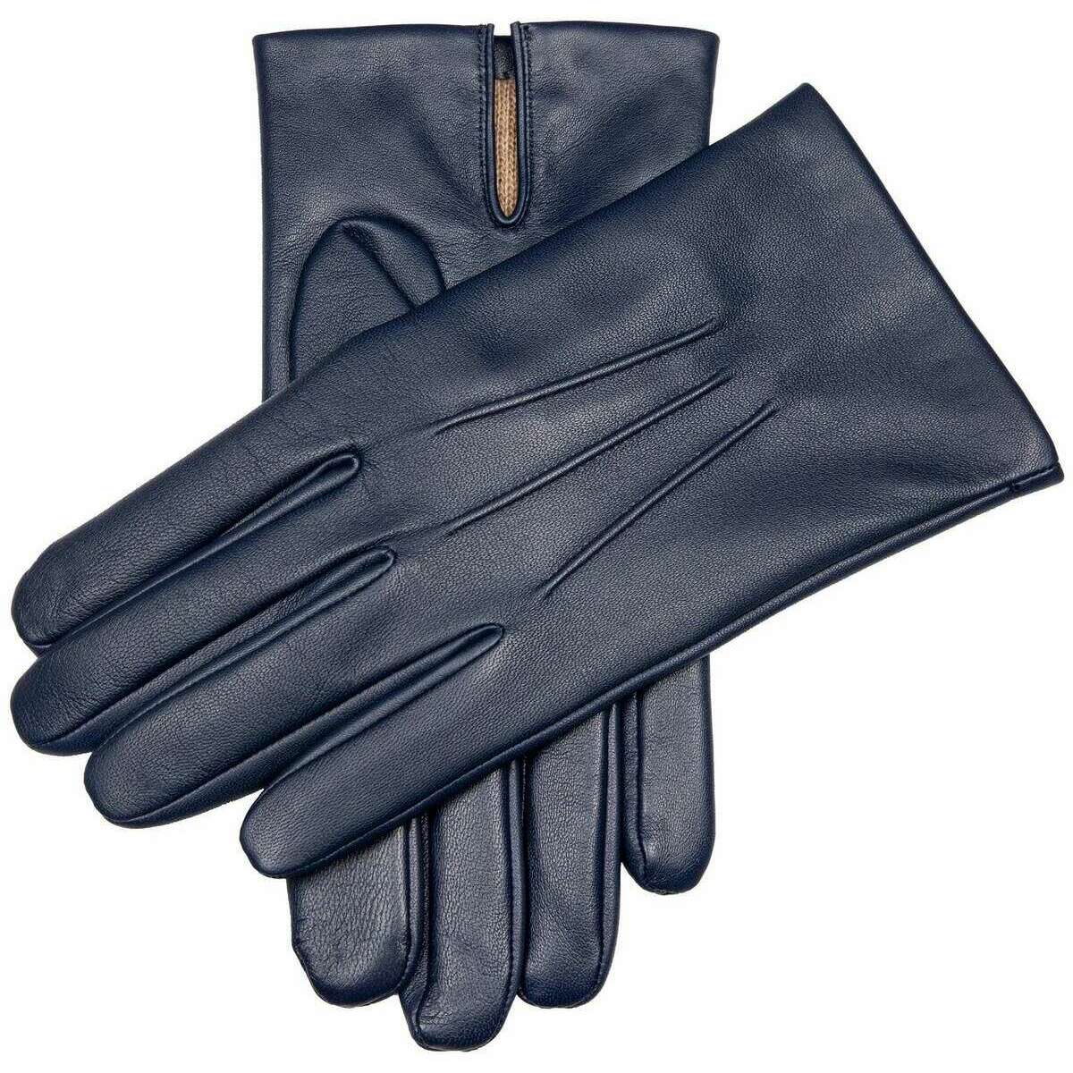 Guanti in pelle foderati in cashmere a tre punti Dents Bath - Blu scuro