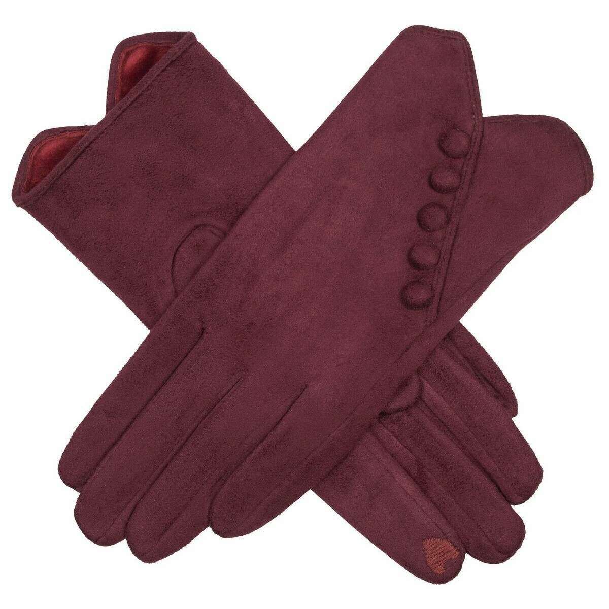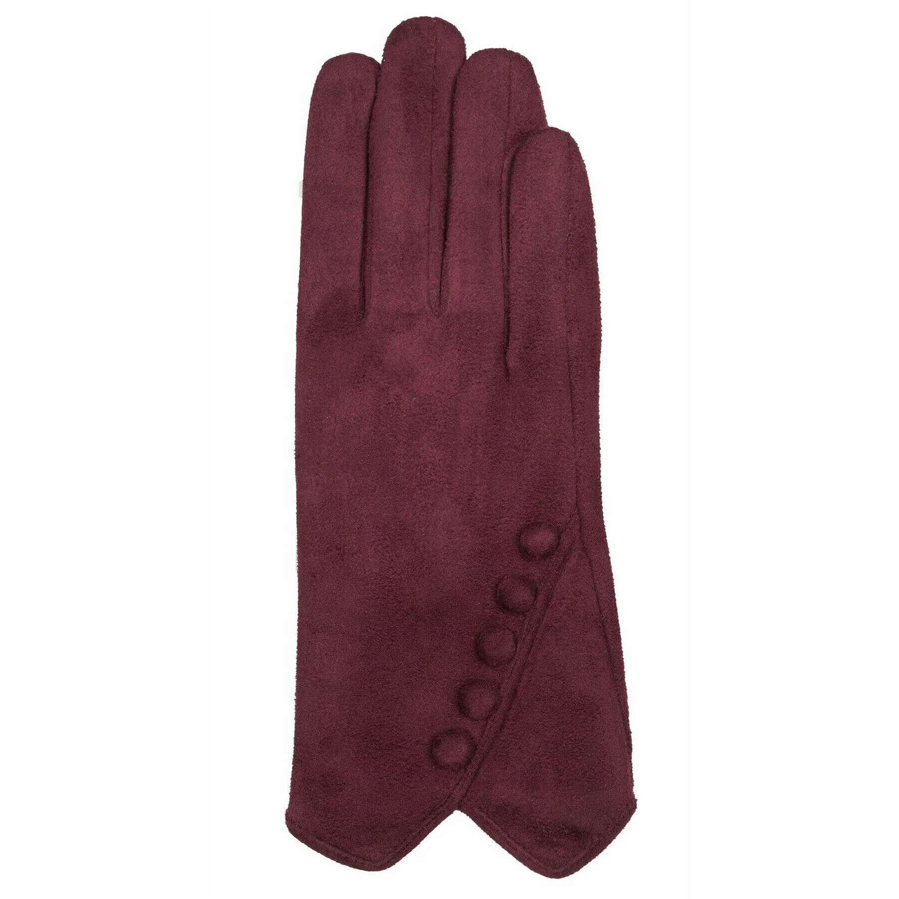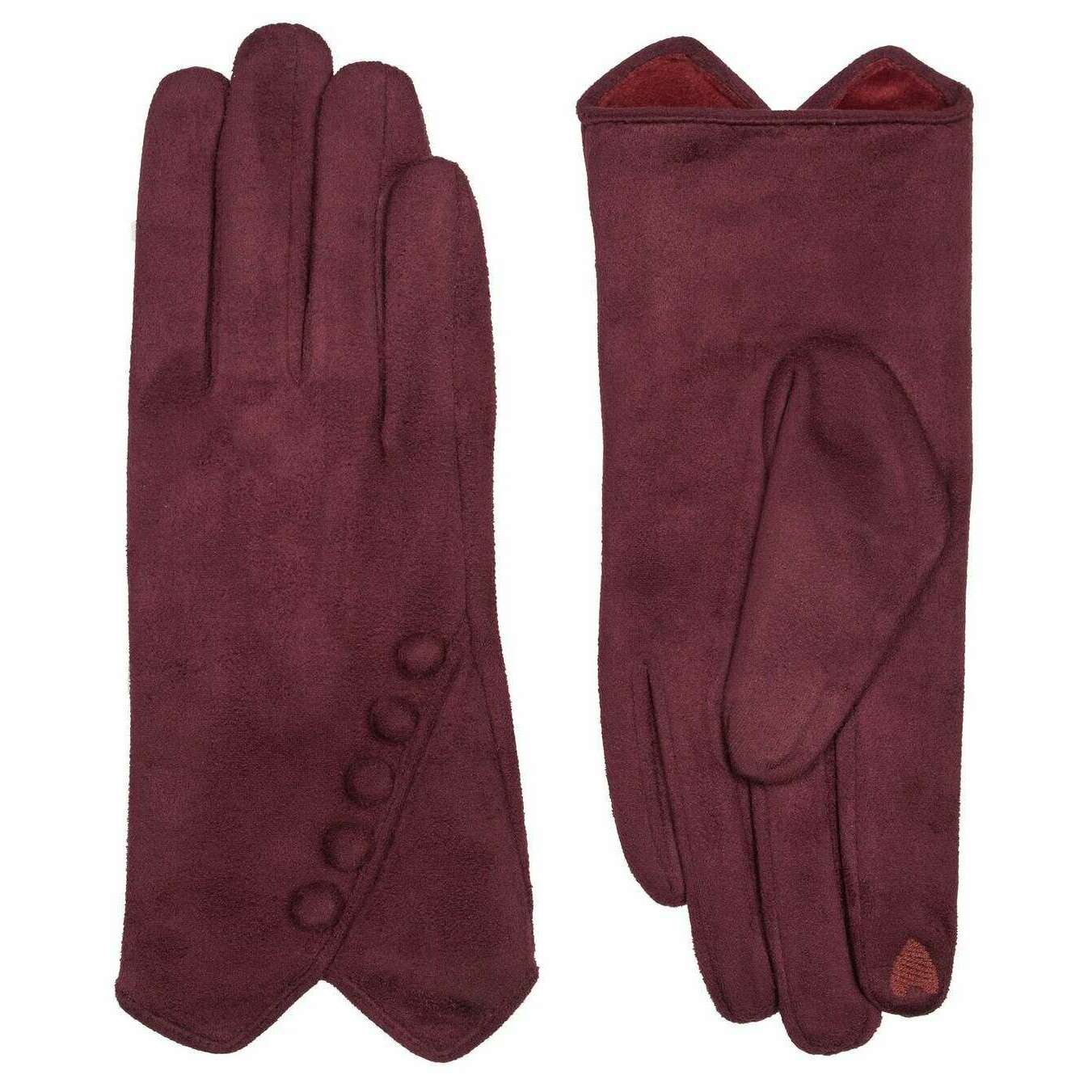 Guanti in pelle scamosciata in finto abbottonate - Damson Borgogna