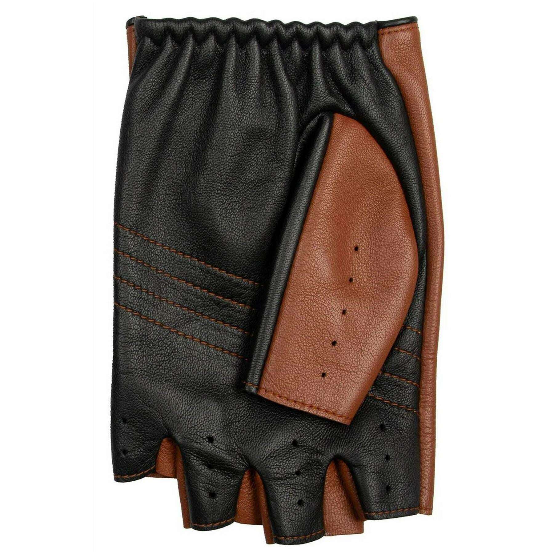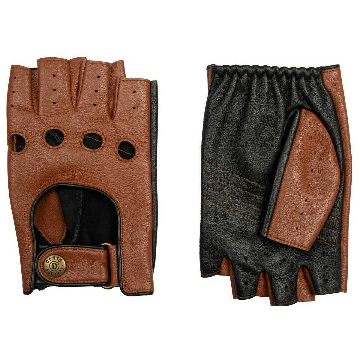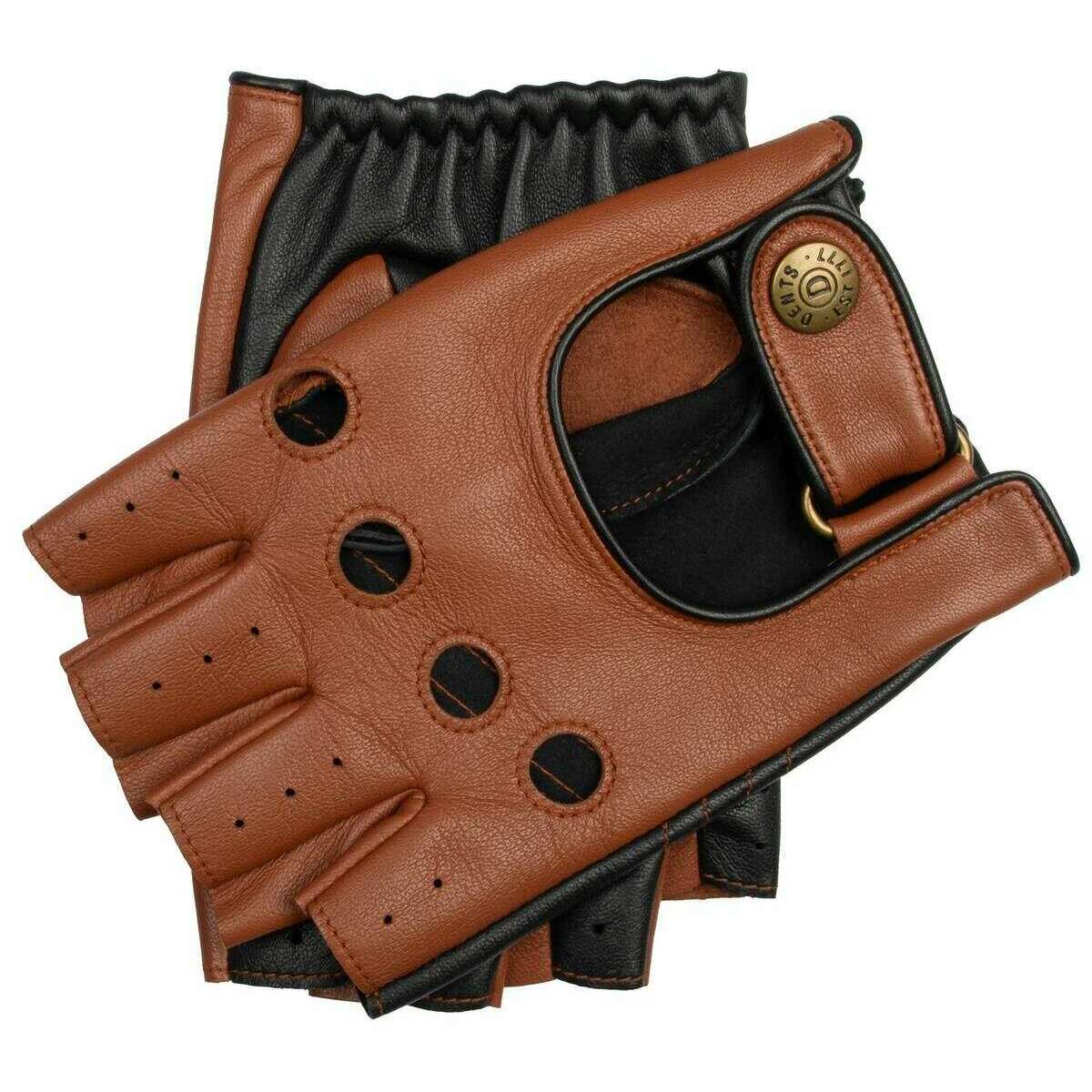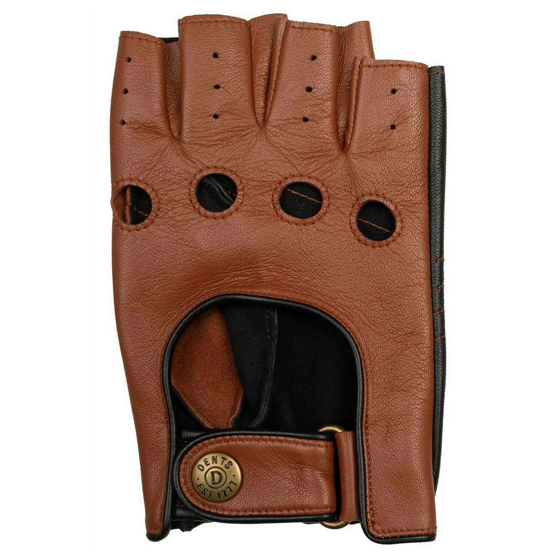 Guanti da guida in pelle bicolore senza dita Dents Cadwell - Marrone Cognac/Nero