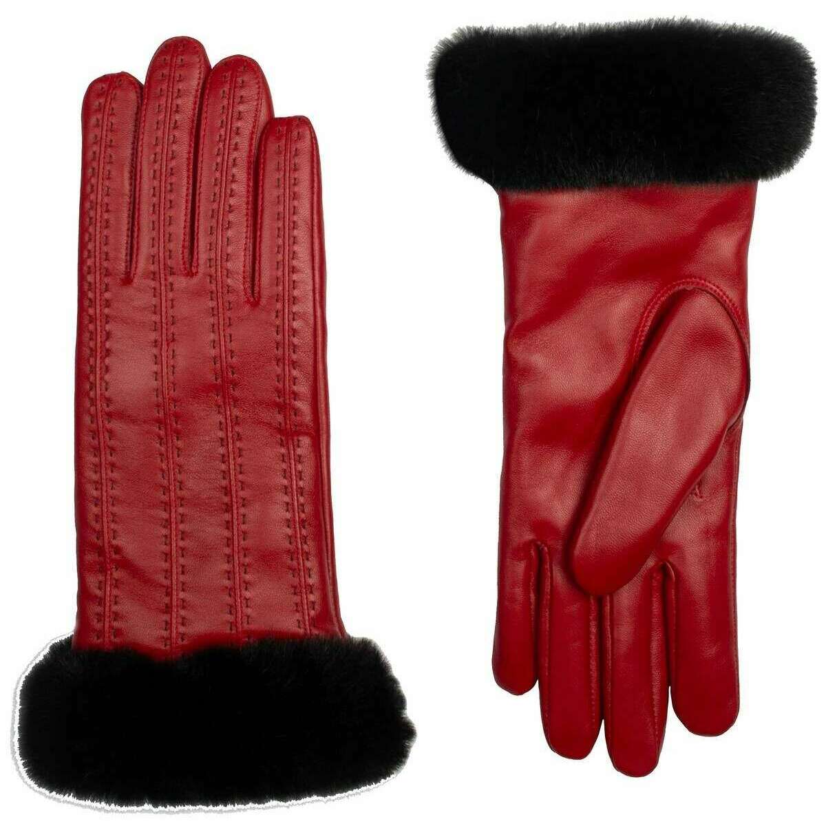 Guanti in pelle Dents Cassie con cuciture a contrasto - Rosso bacca/Nero
