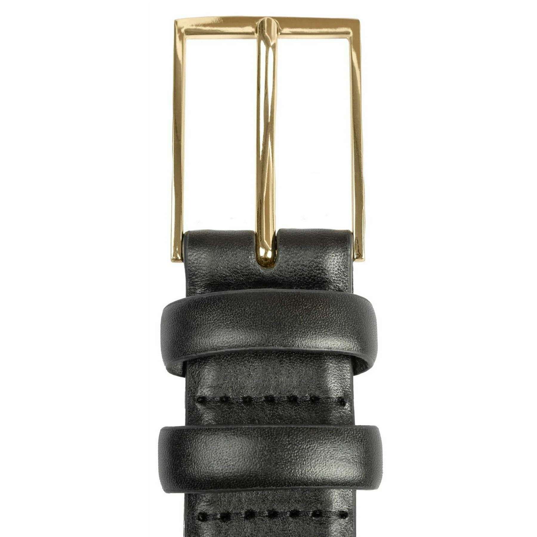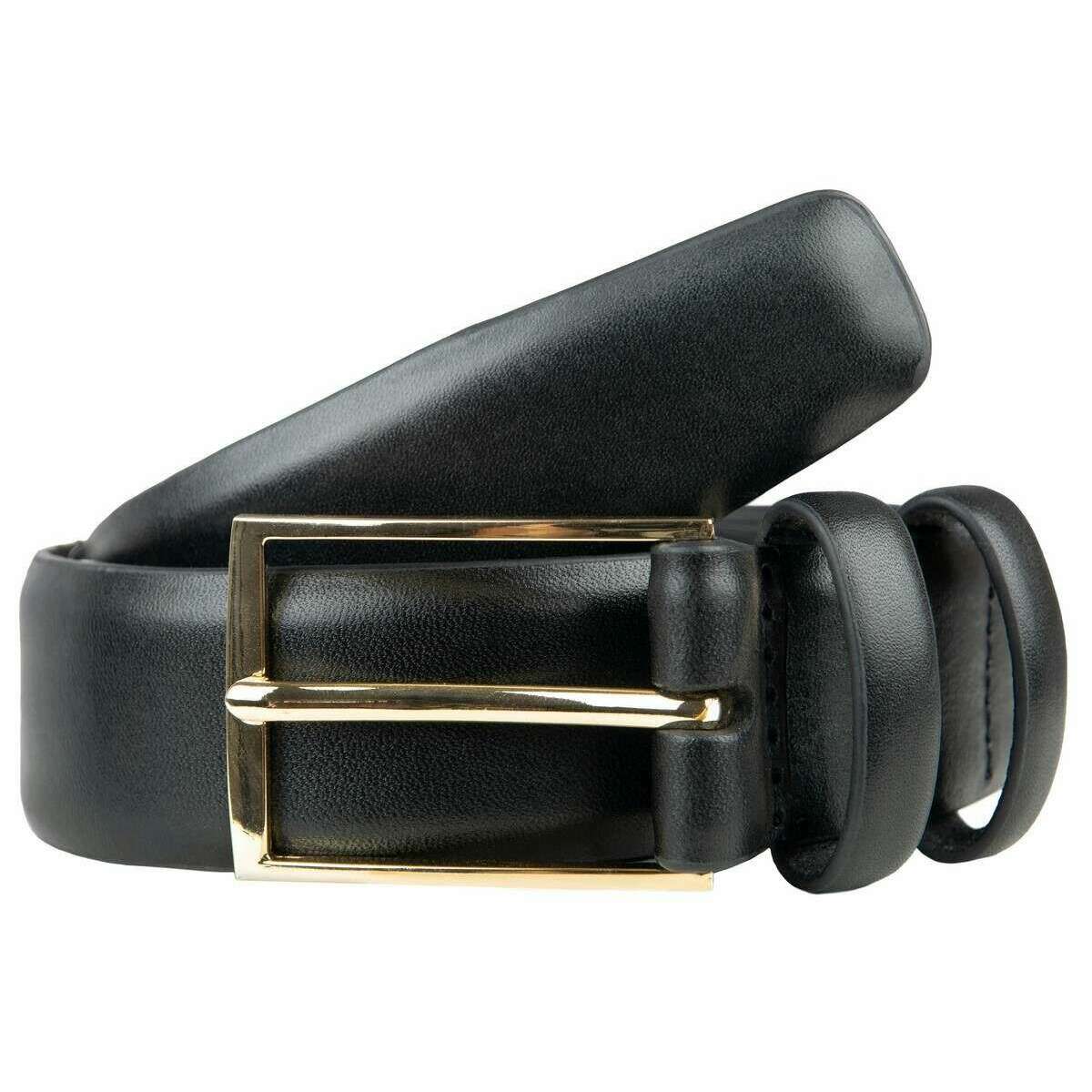 Questa cintura in pelle foderata con fibbia dorata da uomo è stata realizzata al 100% in pelle, caratterizzata da un colore nero ed è del marchio Dents. Tutte le cinture sono complete di cartellino ammaccature. La cintura in pelle foderata con fibbia dorata Dents - Nera presenta una finitura complessiva elegante ed elastica che mette in mostra la sua qualità lussuosa. Ha doppi passanti in pelle liscia ed elegante rifiniti con una scintillante fibbia quadrata dorata. Questo capo è un'ottima scelta per ogni occasione poiché puoi indossarlo in modo casual o in occasioni più formali.