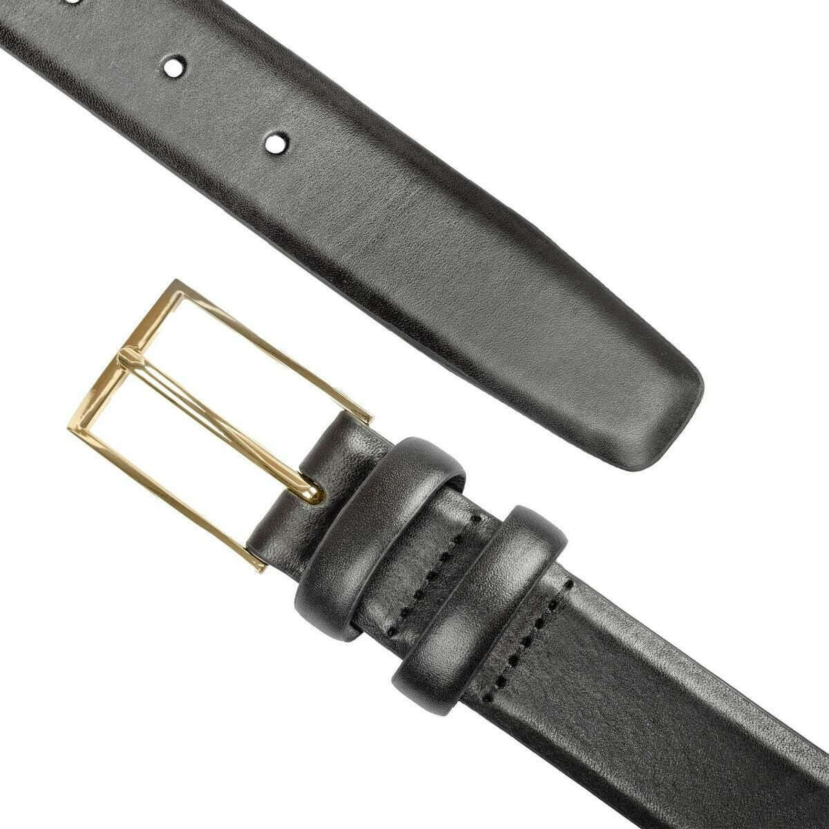 • Bordi arrotondati, Fodera in pelle, Fibbia quadrata, Doppio passante in pelle, Punta della cintura trapezoidale, Cinque fori, Larghezza 3,5 cm