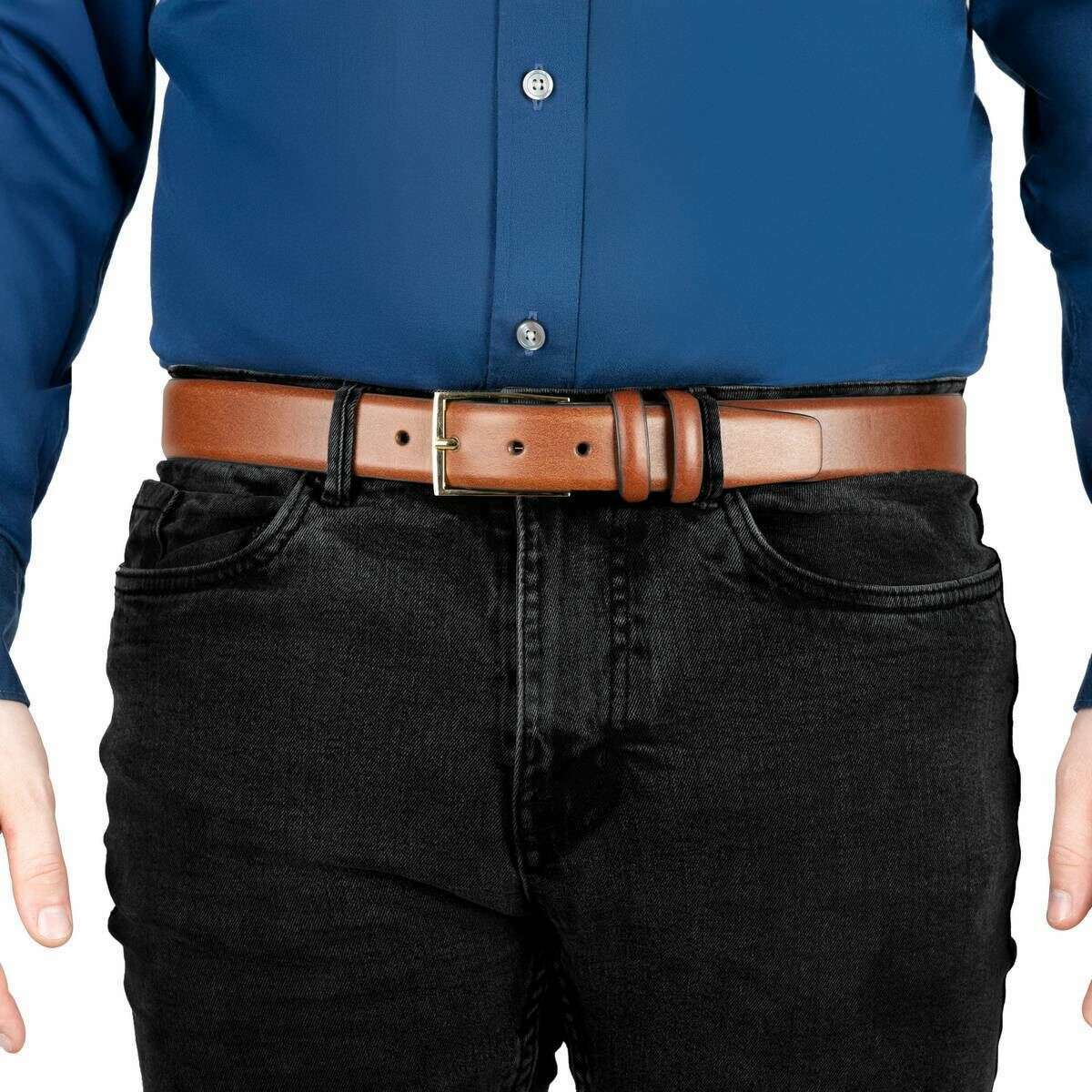 • Bordi arrotondati, Fodera in pelle, Fibbia quadrata, Doppio passante in pelle, Punta della cintura trapezoidale, Cinque fori, Larghezza 3,5 cm