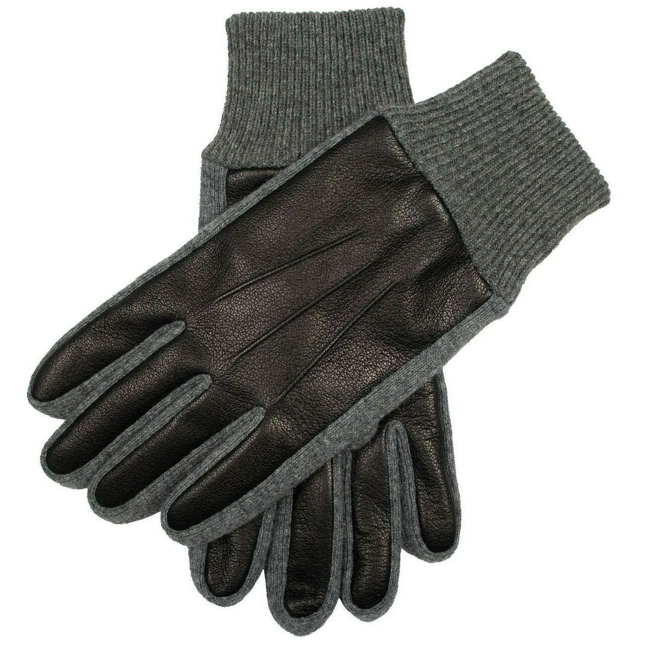 Guanti in pelle con polsino lavorato a maglia Dents Harrogate - neri