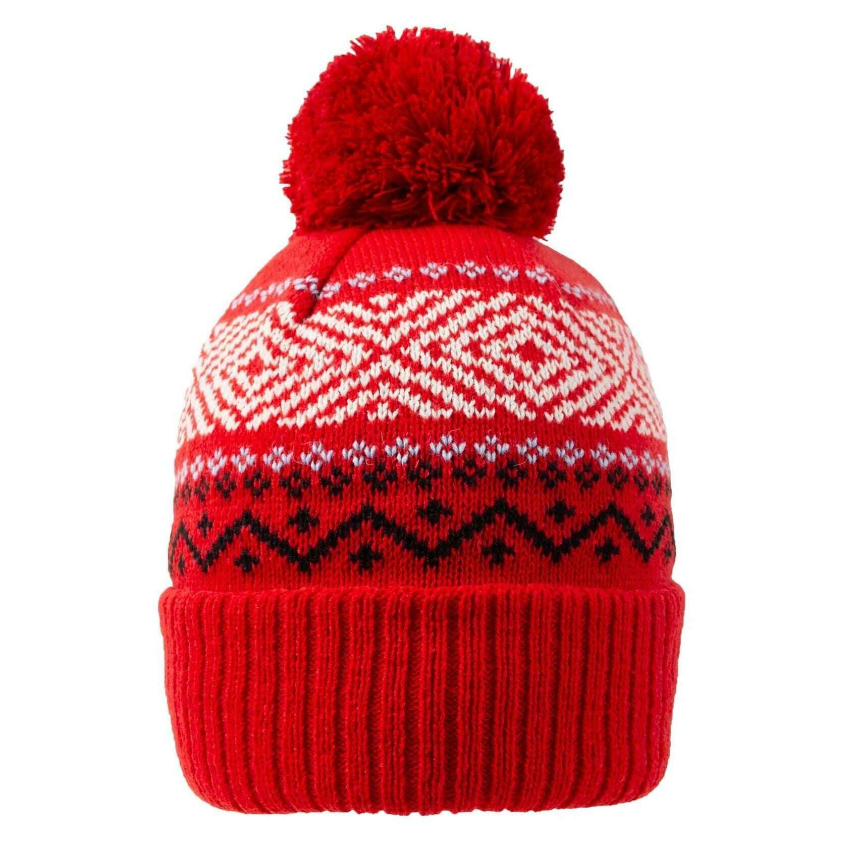 Cappello con pompon lavorato a maglia jacquard Dents - Rosso bacca