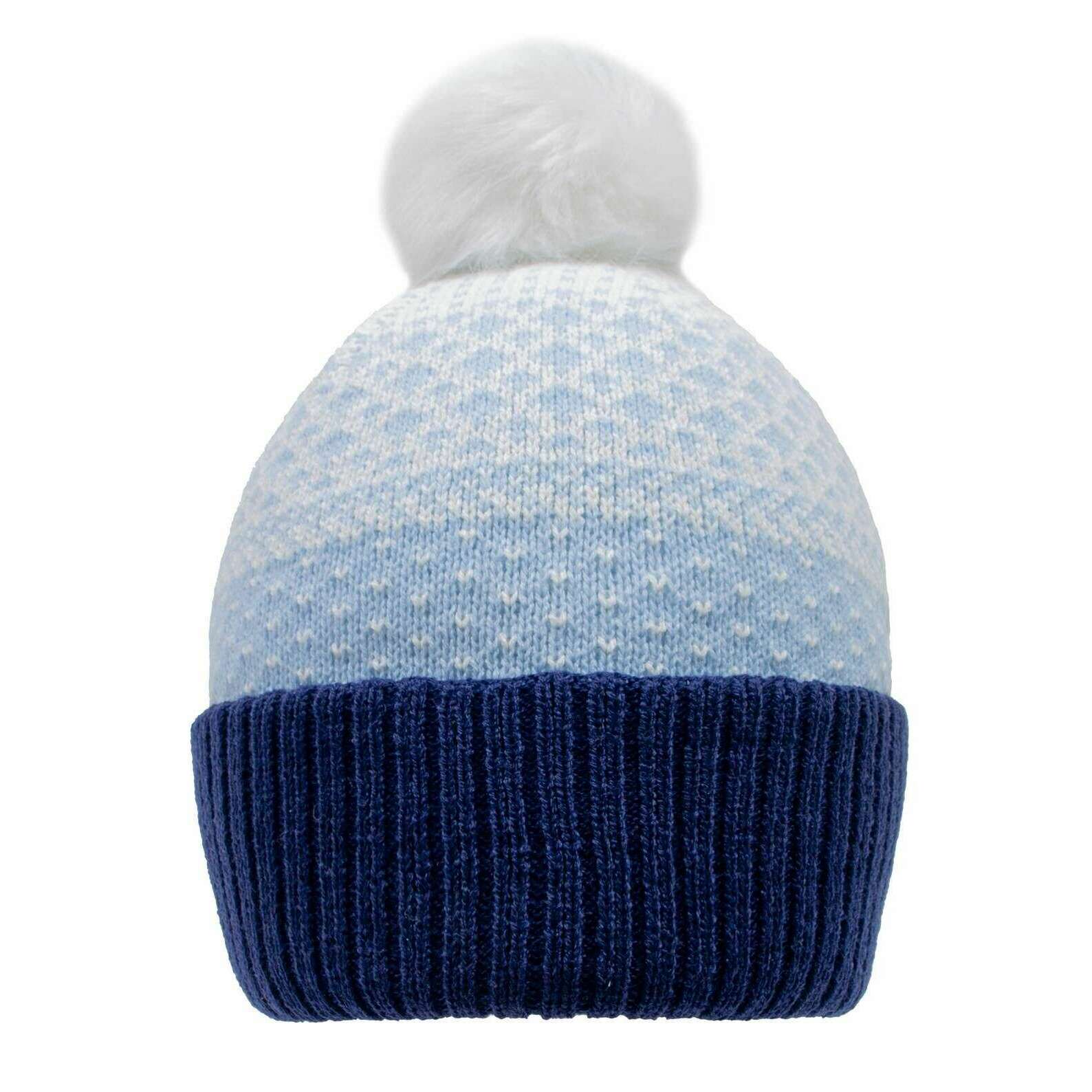 Cappello con pompon lavorato a maglia a pois jacquard Dents - Blu pallido/Navy