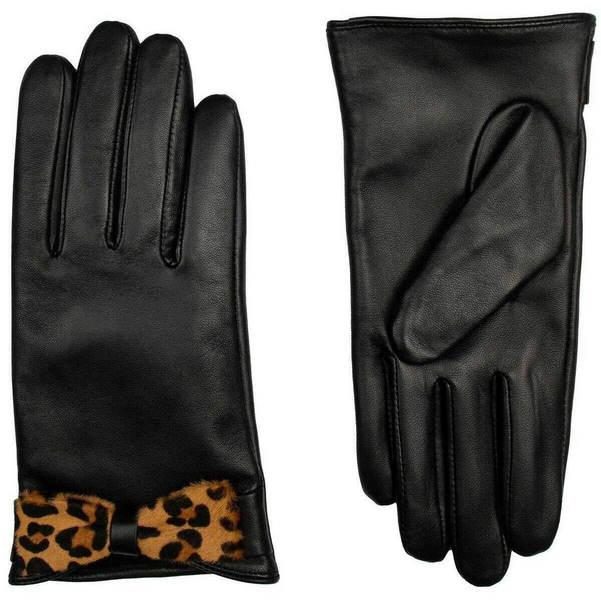 Dents Laurie Bow Leather Gloves - Leopard/Black
