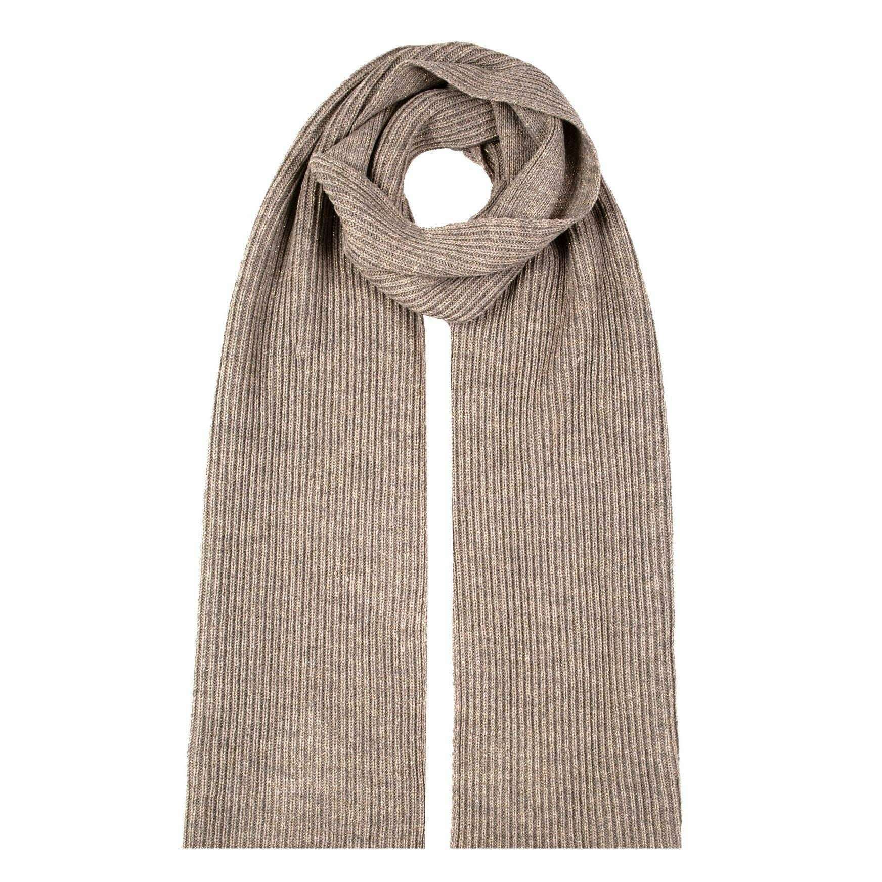 Sciarpa in filato metallizzato lavorato a coste con ammaccature - Beige avena