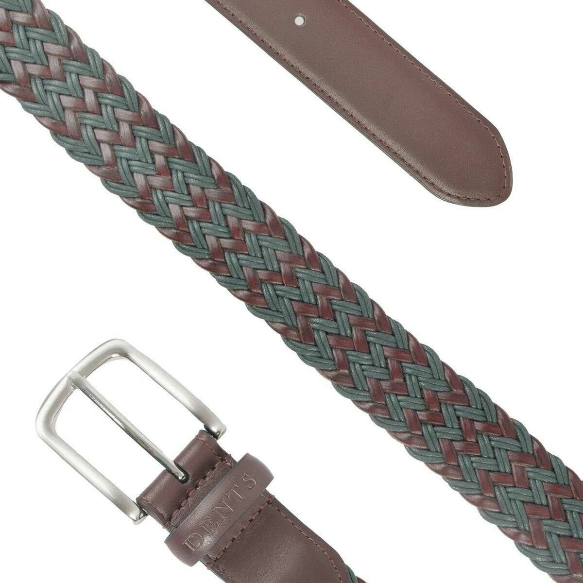 Questa cintura da uomo in pelle intrecciata e cotone di ottima fattura di Dents è disponibile in colore verde ed è realizzata al 100% in pelle. Tutte le cinture sono complete di cartellino ammaccature. La cintura Dents in pelle intrecciata e cotone - Verde è la scelta ideale se stai cercando di portare un tocco di stile al tuo guardaroba. La sua struttura intrecciata gli conferisce un look complessivo straordinario che completerà perfettamente il tuo outfit sia in occasioni casual che formali. Questa cintura presenta un unico passante in pelle, finiture color nichel satinato ed è sfoderata.