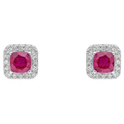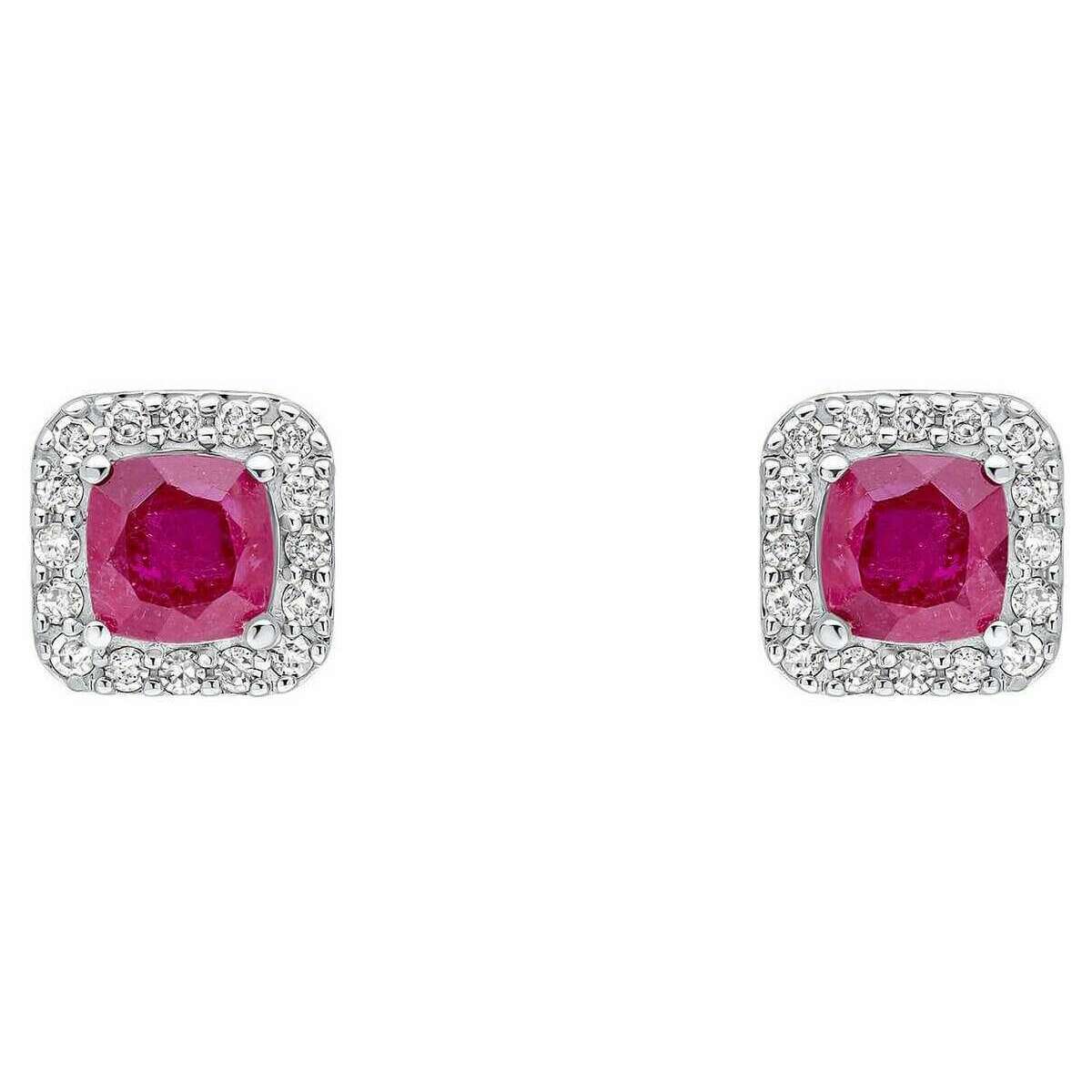 Orecchini Elements in oro con rubino taglio cuscino e diamanti Halo in oro da 9 ct - Oro/Rosso