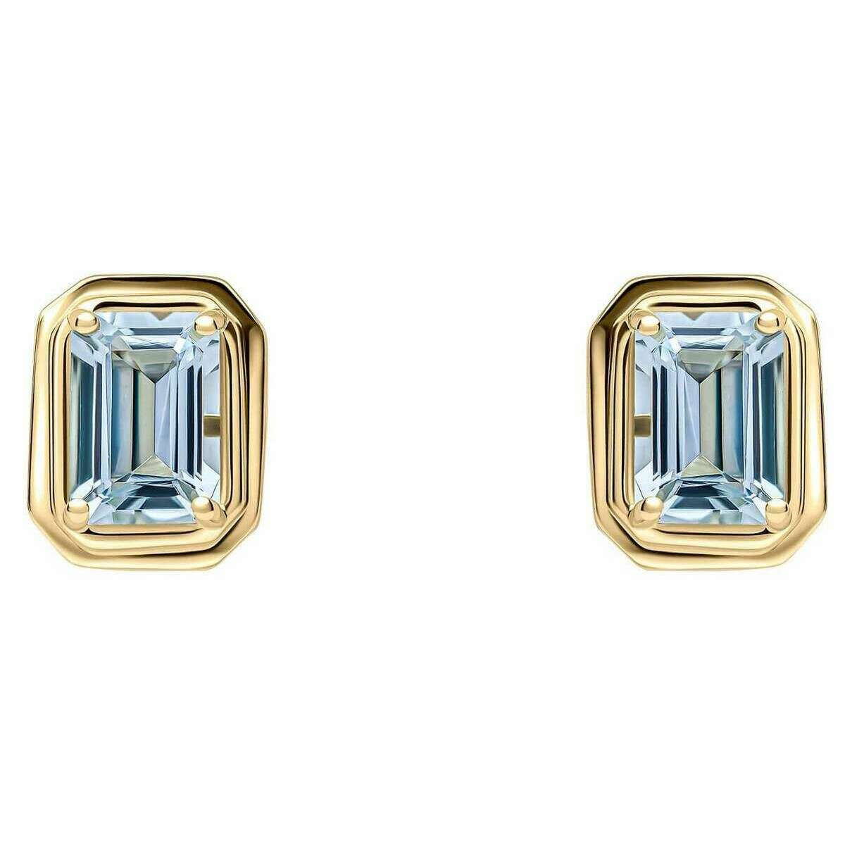 Orecchini a bottone in oro da 9 ct con acquamarina ottagonale allungata Elements - Oro/Blu