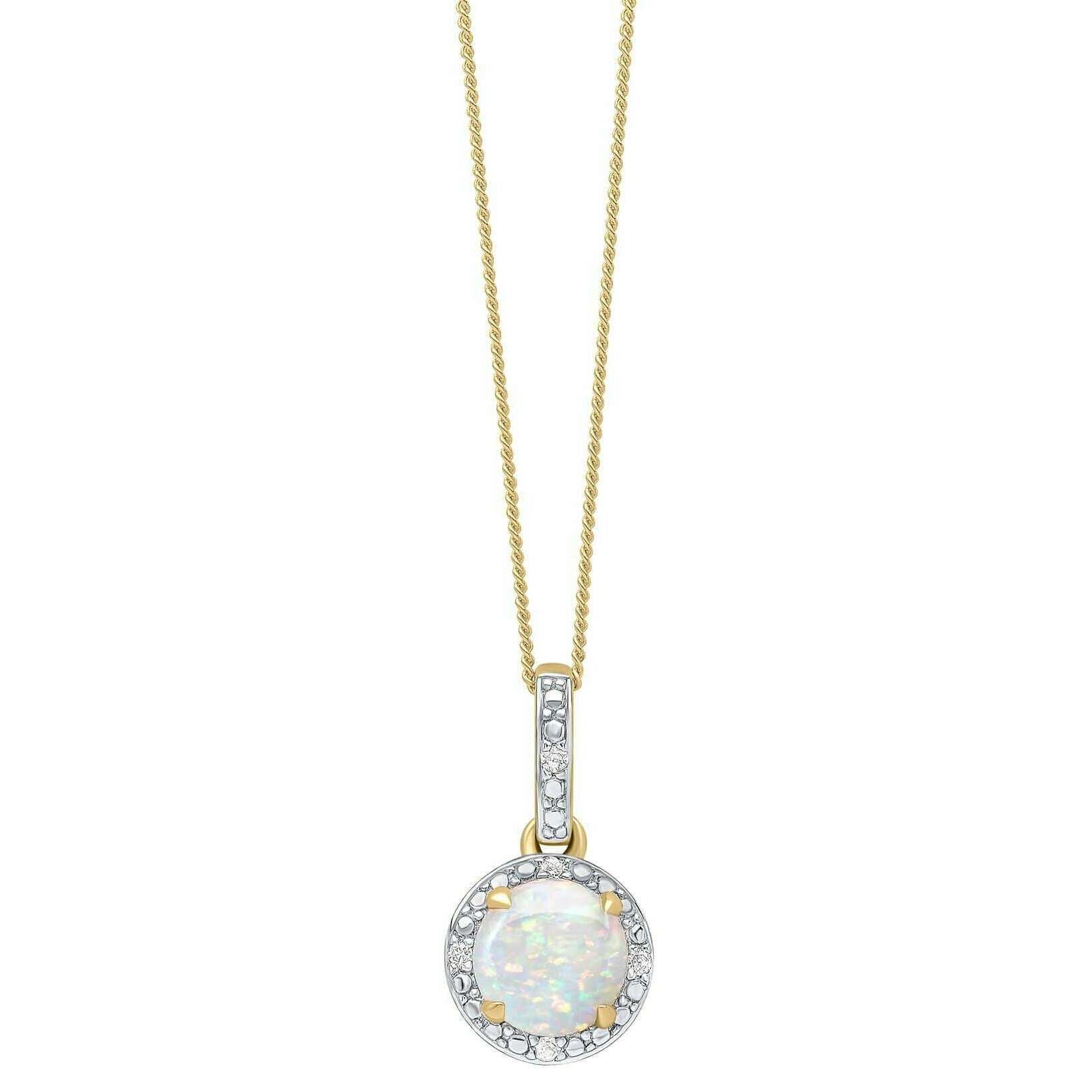 Pendente in oro da 9 ct con opale e diamanti rotondi Elements - Oro/Argento