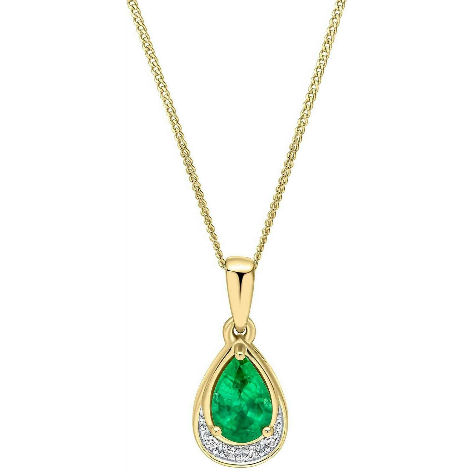Pendente in oro da 9 ct con smeraldo a goccia e diamanti Elements - verde