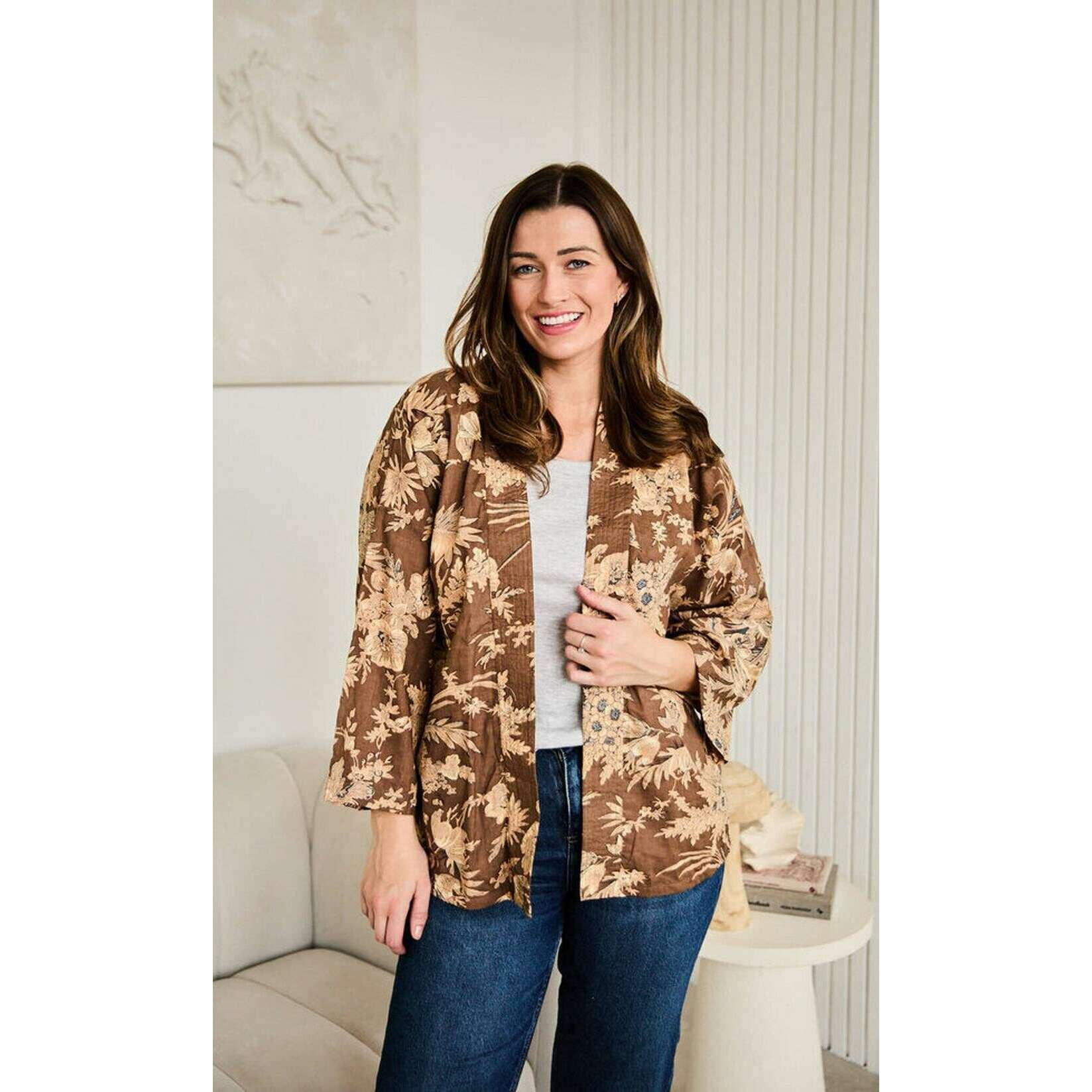 Kimono corto Elie Beaumont Serendipity - Fiore di caffè marrone