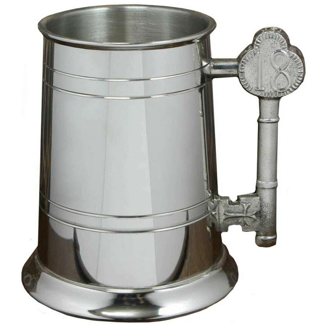 Usando il peltro d'argento, questo tankard chiave da 1pt 18 della compagnia di peltro inglese è perfetto per uomini o donne e un must. Misura 12,75 cm (altezza). Tutti i bevande e la vetreria sono completi in una confezione regalo della compagnia di peltro inglese. The English Pewter Company 1pt 18 Key Handle Tankard - L'argento farà il regalo perfetto per qualcuno di speciale o da aggiungere al tuo bevanda. Presenta una maniglia robusta con un design intricato e offre un fascino classico con la sua finitura pesante. Riempilo con la tua birra preferita o birra artigianale e solleva un brindisi per l'occasione speciale. Il materiale di alta qualità garantisce che emana il fascino senza tempo.