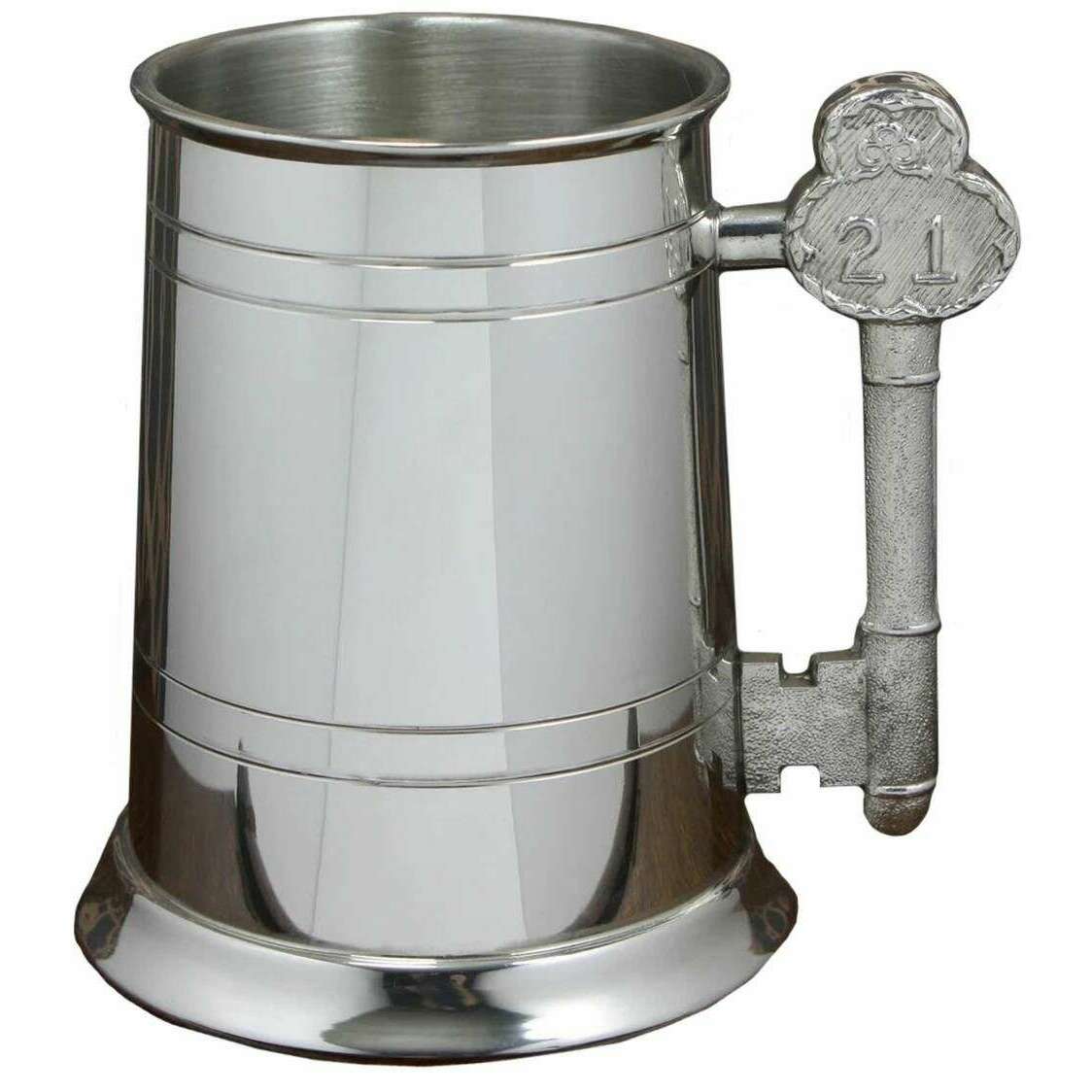 Compagnia di peltro inglese 1pt 21 manico chiave Tankard - argento