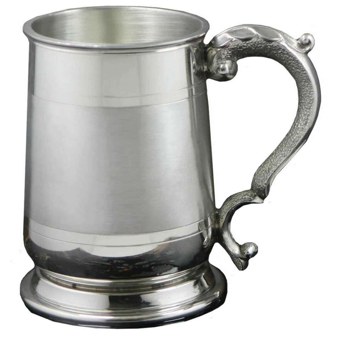 Compagnia di peltro inglese 1pt Cavalier Banda in raso Tankard - Silver