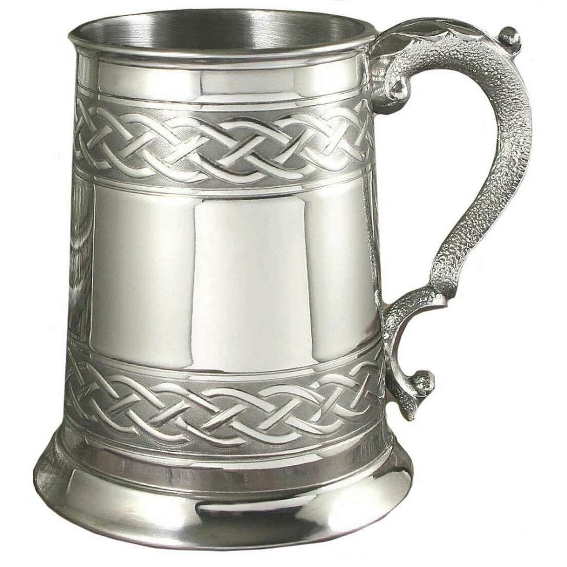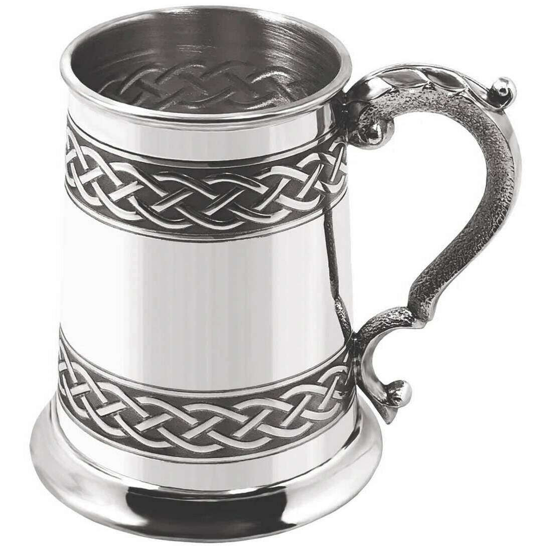 Compagnia di peltro inglese 1pt Banda Celtica in rilievo Tankard - Silver