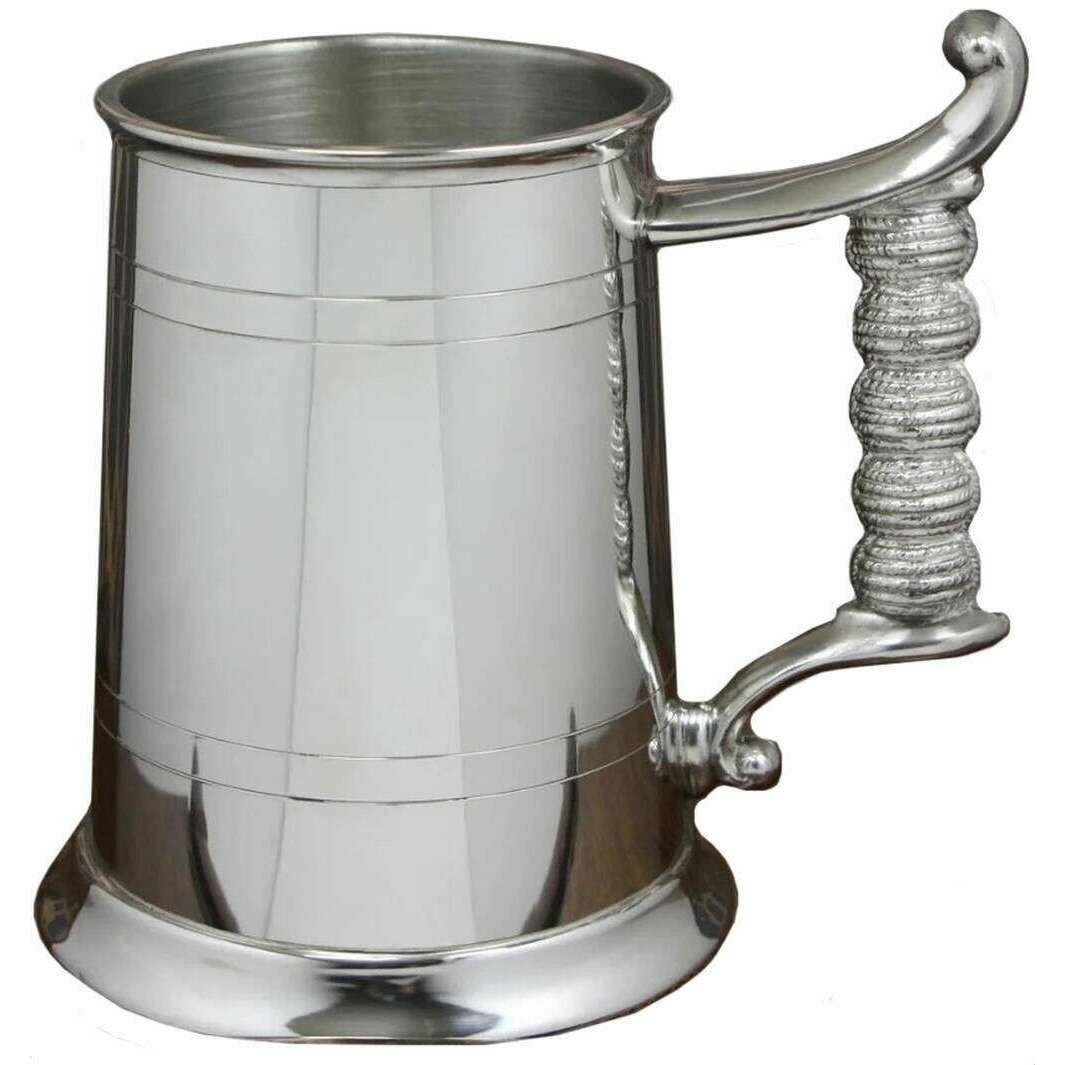 Compagnia di peltro inglese 1pt manico a corda dritta tankard - argento