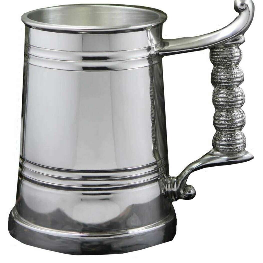 Compagnia di peltro inglese 1pt manico a corda Worcester Tankard - argento