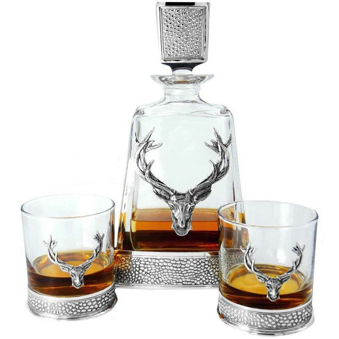 Compagnia di peltro inglese 600 ml Regal Stag Medium Decanter - Silver/Clear