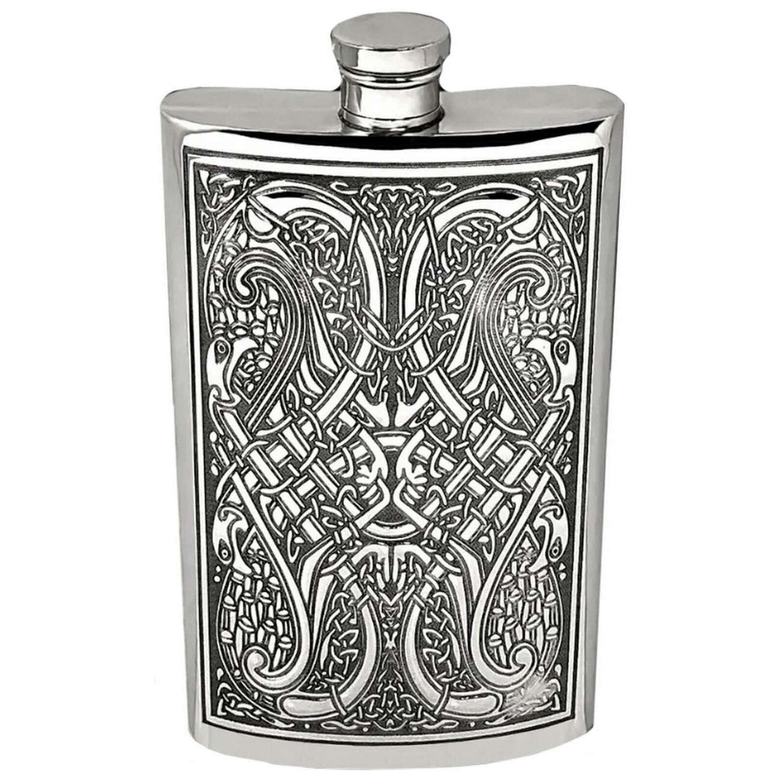 Compagnia di peltro inglese 6oz Celtic Knot Hip Flask - argento