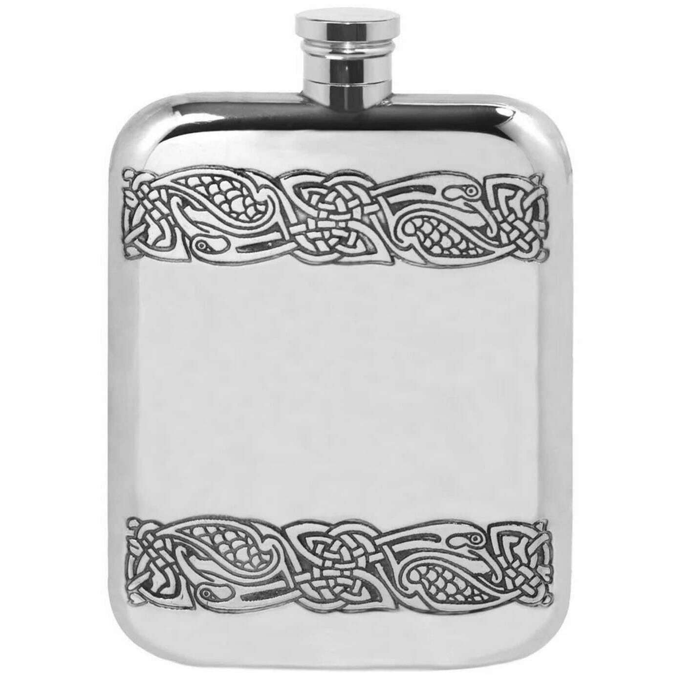 Compagnia di peltro inglese 6oz Celtic Borse Fask - Silver