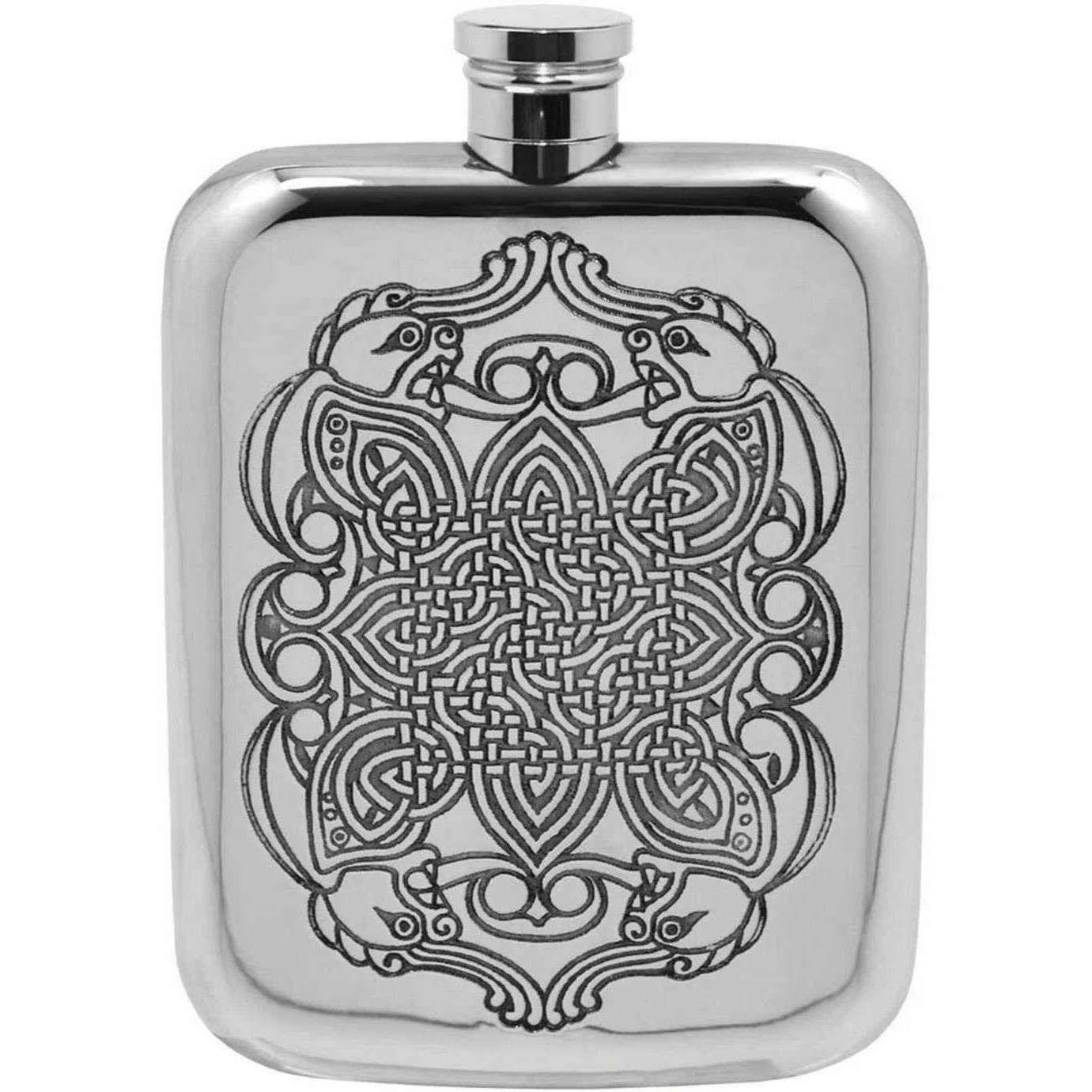 Compagnia di peltro inglese 6oz Celtic Borse Fask - Silver